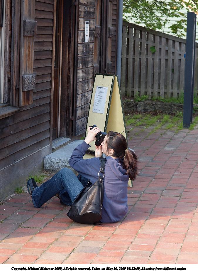 Picture #48: Shooting from different angles Thumb: 338x450, 64,292 bytes (63K) Small: 675x923, 141,361 bytes (139K), (html file) Copyright, Michael Meissner 2009, All rights reserved Olympus E-620 camera with Olympus 14-54mm f/2.8-3.5 lens f/5.0, ISO 200, 1/250 sec, 54.0mm, auto mode, natural color, matrix metering, IS1 (All Direction Shake IS), noise reduction auto 35mm equivalent focal length 108.0mm Programs used: gimp, rotate Taken by Michael Meissner on May 16, 2009 08:52:59 Last modified on May 23, 2009 at 23:27 |