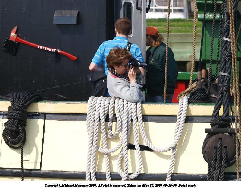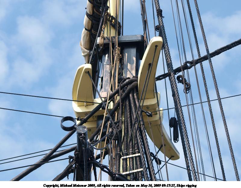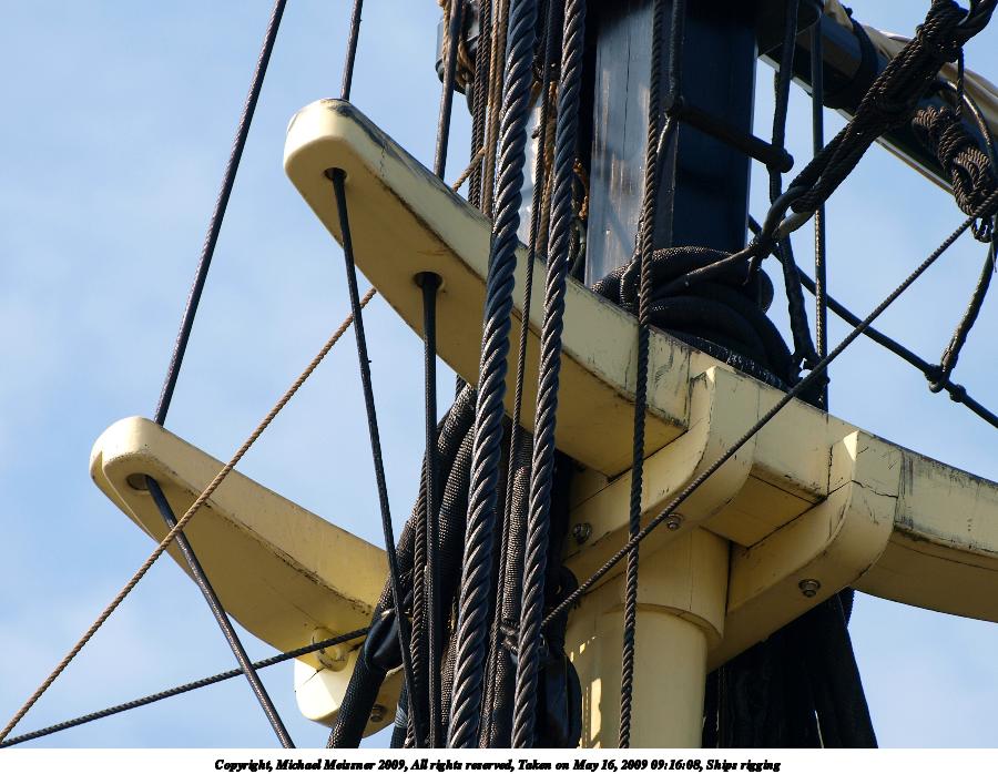 Picture #64: Ships rigging Thumb: 450x338, 63,687 bytes (63K) Small: 900x698, 128,665 bytes (126K), (html file) Copyright, Michael Meissner 2009, All rights reserved Olympus E-3 camera with Olympus 70-300mm f/4.0-5.6 lens and Olympus EC-14 (1.4x) f/7.1, ISO 125, 1/250 sec, 286.0mm, auto mode, vivid color, matrix metering, continous focus, IS1 (All Direction Shake IS) 35mm equivalent focal length 573.0mm, EC-14 Programs used: gimp Taken by Michael Meissner on May 16, 2009 09:16:08 Last modified on May 24, 2009 at 01:17 |