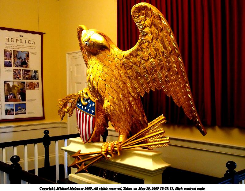 Picture #91: High contrast eagle Thumb: 400x300, 65,125 bytes (64K) Small: 800x623, 131,103 bytes (129K), (html file) Copyright, Michael Meissner 2009, All rights reserved Olympus E-3 camera with Olympus 14-54mm f/2.8-3.5 lens f/2.9, ISO 1250, 1/50 sec, 19.0mm, auto mode, vivid color, manual wb, matrix metering, IS1 (All Direction Shake IS) 35mm equivalent focal length 38.0mm Programs used: NoiseNinja, gimp Taken by Michael Meissner on May 16, 2009 10:29:19 Last modified on June 12, 2009 at 09:09 |