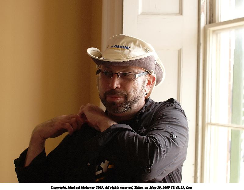 Picture #92: Lou #3 Thumb: 300x400, 42,125 bytes (42K) Small: 600x823, 72,172 bytes (71K), (html file) Copyright, Michael Meissner 2009, All rights reserved Olympus E-3 camera with Olympus 14-54mm f/2.8-3.5 lens f/2.9, ISO 100, FL-50 flash, 1/60 sec, 19.0mm, auto mode, vivid color, matrix metering, IS1 (All Direction Shake IS) 35mm equivalent focal length 38.0mm Extra equipment used: FL-50 flash Programs used: gimp, rotate Taken by Michael Meissner on May 16, 2009 10:40:24 Last modified on June 12, 2009 at 09:11 |