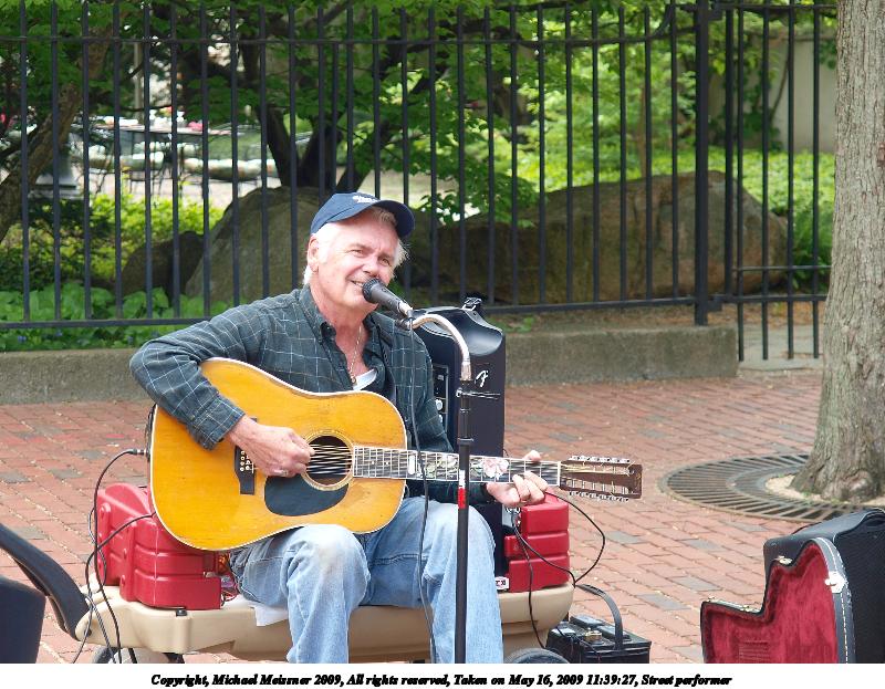 Picture #101: Street performer Thumb: 400x300, 68,090 bytes (67K) Small: 800x623, 139,898 bytes (137K), (html file) Copyright, Michael Meissner 2009, All rights reserved Olympus E-3 camera with Olympus 14-54mm f/2.8-3.5 lens f/3.5, ISO 100, 1/125 sec, 54.0mm, auto mode, vivid color, matrix metering, IS1 (All Direction Shake IS) 35mm equivalent focal length 108.0mm Programs used: gimp Taken by Michael Meissner on May 16, 2009 11:39:27 Last modified on June 12, 2009 at 09:34 |