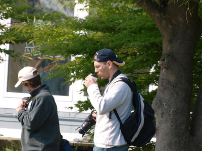 Picture #55: Dueling cameras Thumb: 400x300, 62,580 bytes (62K) Small: 800x623, 124,406 bytes (122K), (html file) Copyright, Michael Meissner 2009, All rights reserved Olympus E-3 camera with Olympus 70-300mm f/4.0-5.6 lens and Olympus EC-14 (1.4x) f/8.0, ISO 100, 1/400 sec, 224.0mm, auto mode, natural color, matrix metering, IS1 (All Direction Shake IS) 35mm equivalent focal length 449.0mm, EC-14 Programs used: gimp Taken by Michael Meissner on May 16, 2009 09:09:18 Last modified on May 23, 2009 at 23:41 |