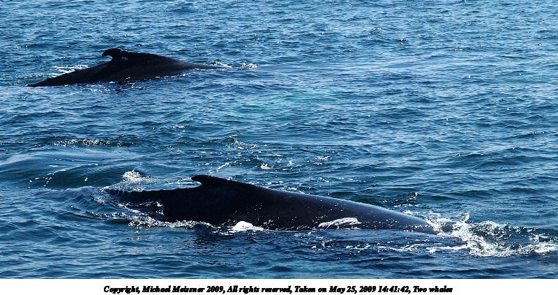 Picture #77: Two whale tails #2 800x423, 120,891 bytes (119K), (html file) Copyright, Michael Meissner 2009, All rights reserved Olympus E-3 camera with Olympus 50-200mm SWD f/2.8-3.5 lens and Olympus EC-14 (1.4x) f/4.5, ISO 160, 1/200 sec, 95.0mm, auto mode, vivid color, auto gradation, center weight metering, IS1 (All Direction Shake IS) 35mm equivalent focal length 190.0mm, EC-14 Extra equipment used: Polarizer Programs used: gimp Taken by Michael Meissner on May 25, 2009 16:55:12 Last modified on June 14, 2009 at 23:27 |