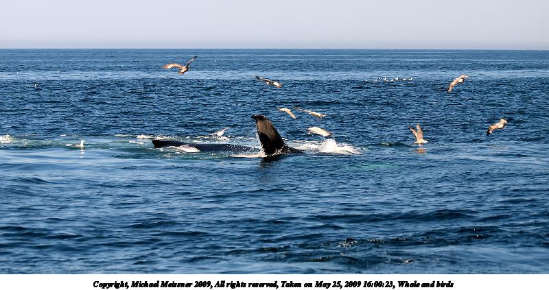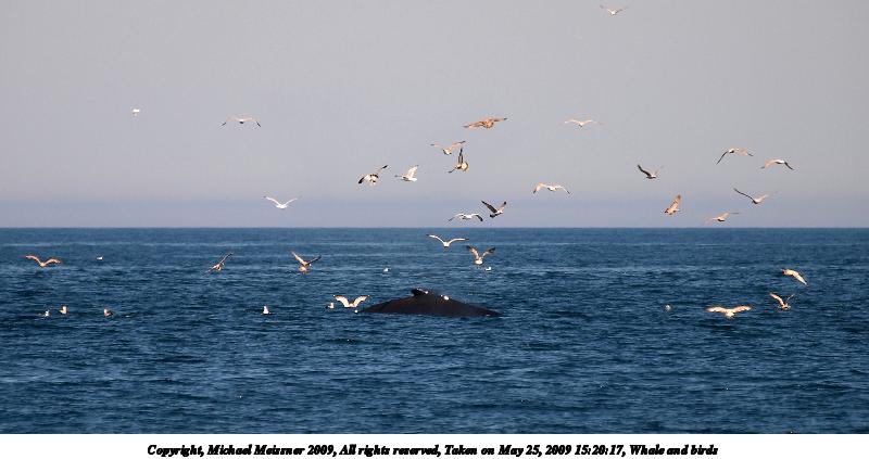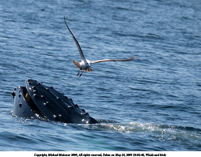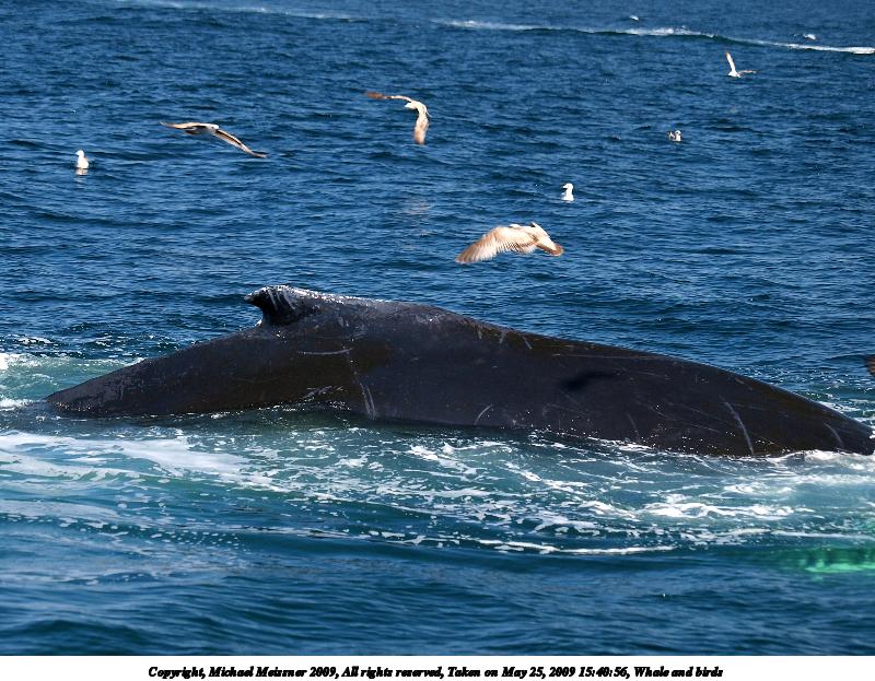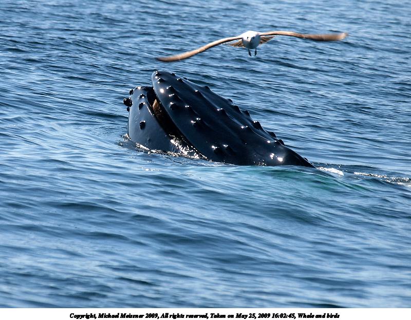Picture #69: Whale and birds #8 800x623, 128,741 bytes (126K), (html file) Copyright, Michael Meissner 2009, All rights reserved Olympus E-3 camera with Olympus 50-200mm SWD f/2.8-3.5 lens and Olympus EC-14 (1.4x) f/5.0, ISO 100, 1/320 sec, 224.0mm, auto mode, vivid color, auto gradation, center weight metering, IS1 (All Direction Shake IS) 35mm equivalent focal length 449.0mm, EC-14 Extra equipment used: Polarizer Programs used: gimp Taken by Michael Meissner on May 25, 2009 16:02:45 Last modified on June 14, 2009 at 19:56 |
