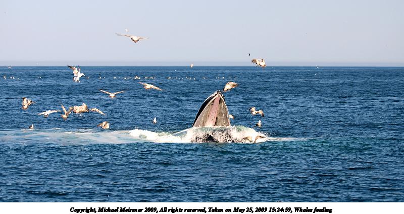 Picture #84: Whale feeding #18 800x623, 155,510 bytes (152K), (html file) Copyright, Michael Meissner 2009, All rights reserved Olympus E-1 camera with Olympus 14-54mm f/2.8-3.5 lens f/7.1, ISO 100, 1/500 sec, 47.0mm, auto mode, SHQ, matrix metering, bias 0.3, +2 contrast, +2 sharpening 35mm equivalent focal length 94.0mm Programs used: gimp Taken by Michael Meissner on May 25, 2009 14:40:48 Last modified on June 15, 2009 at 08:15 |