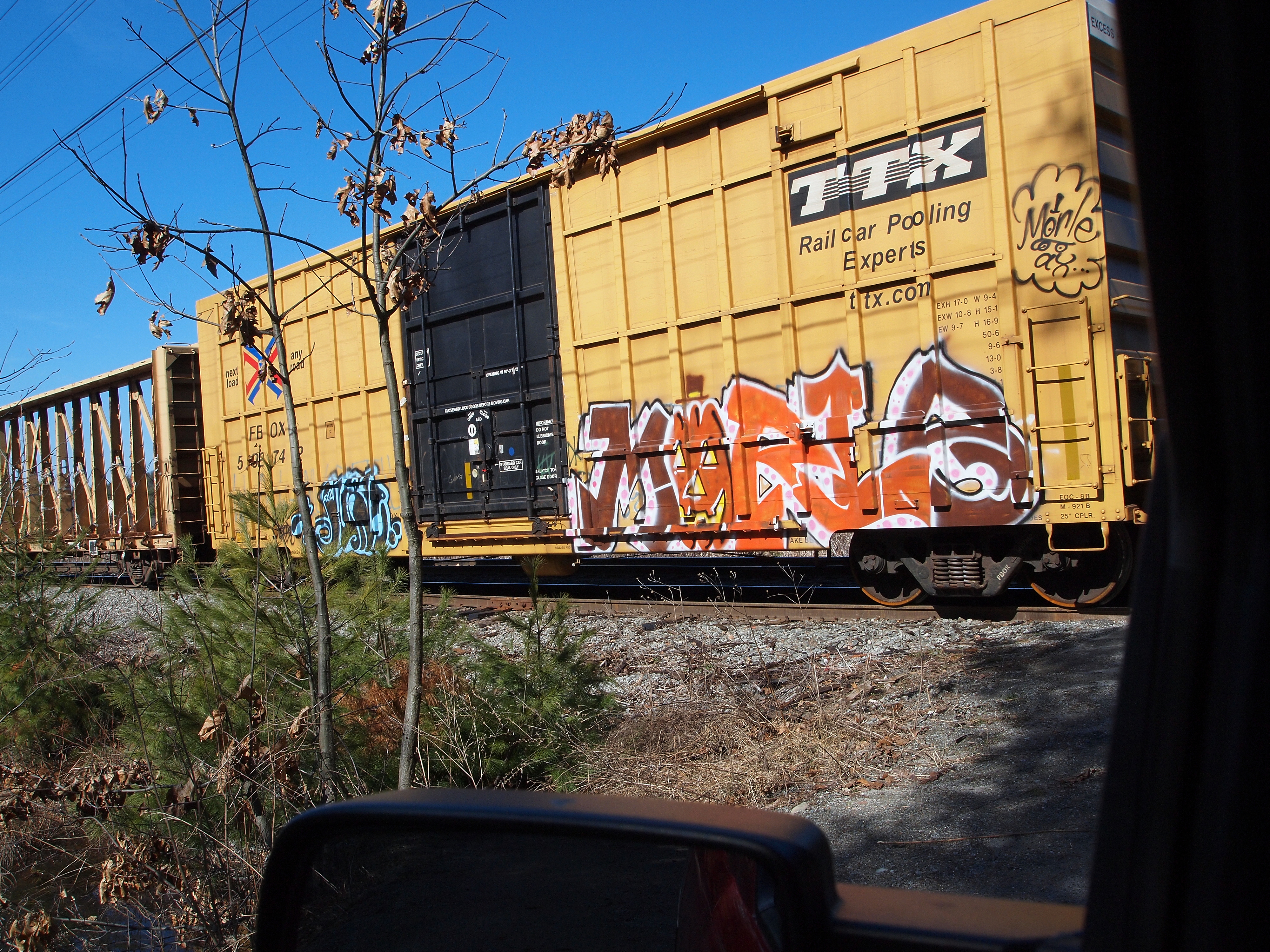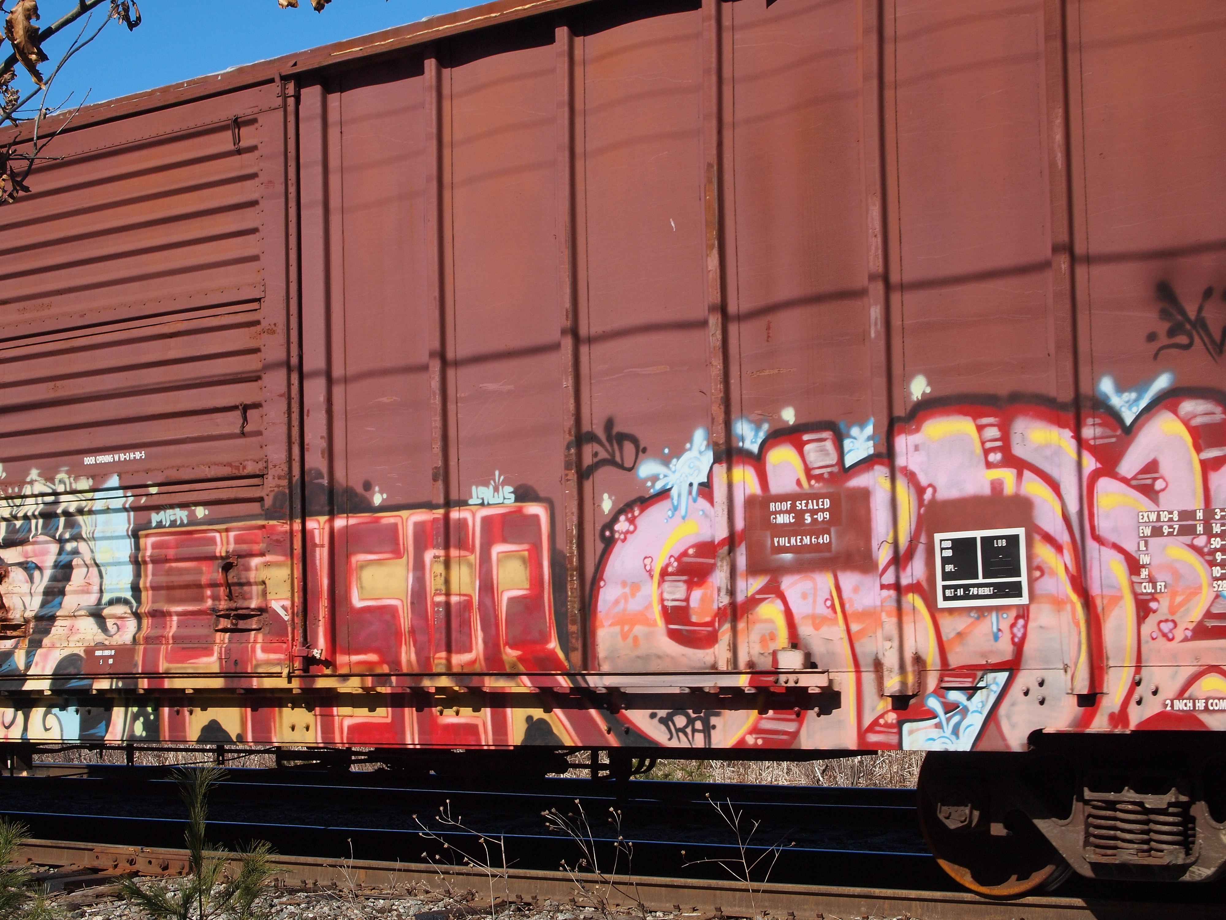 Picture #79: Train graffiti Small: 1000x773, 260,610 bytes (255K), (html file) Large: 4000x3000, 13,245,785 bytes (13M), (html file) Copyright, Michael Meissner 2010, All rights reserved Olympus E-P2 camera with Olympus-m43 14-42mm f/3.5-5.6 lens f/10.0, ISO 200, 1/250 sec, 33.0mm, auto mode, vivid color, matrix metering, continous focus, IS1 (All Direction Shake IS), noise reduction auto 35mm equivalent focal length 66.0mm Programs used: gimp Taken by Michael Meissner on March 17, 2010 11:11:34 Last modified on March 18, 2010 at 09:25 |