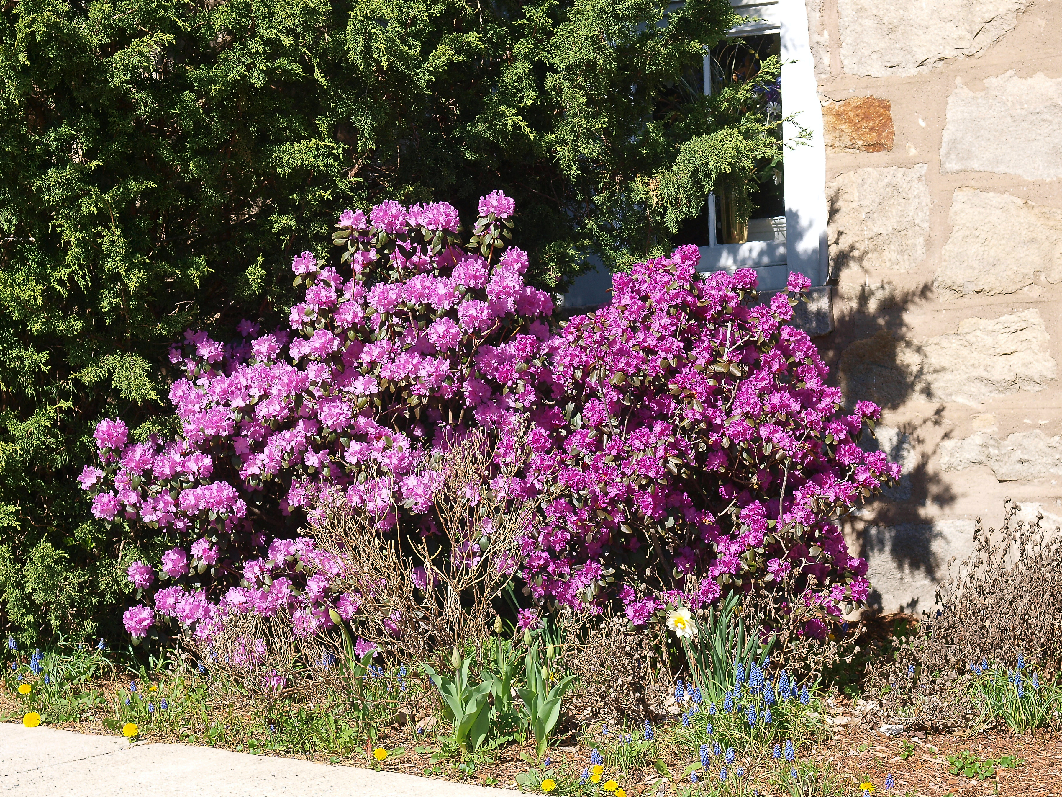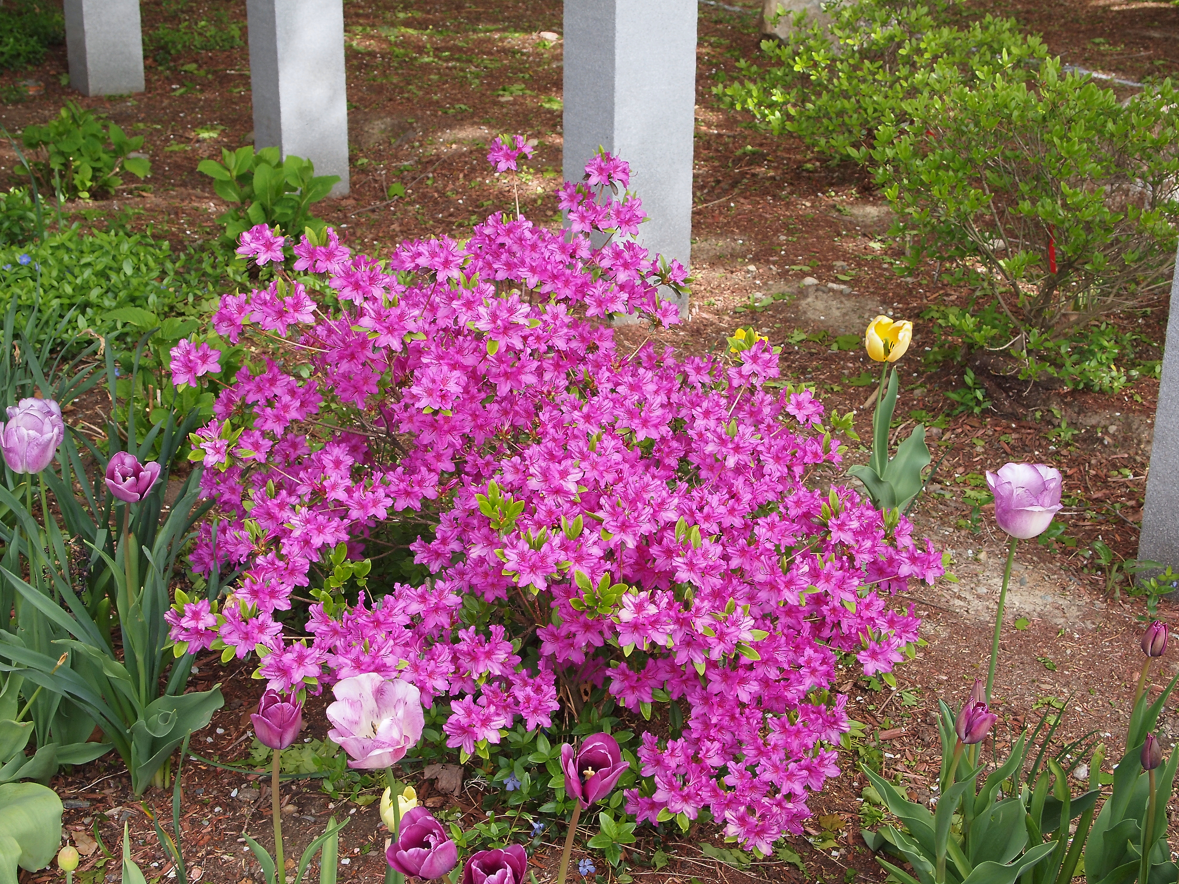 Picture #2: Azaleas and tulips Small: 1000x773, 273,360 bytes (267K), (html file) Large: 4000x3000, 14,458,601 bytes (14M), (html file) Olympus E-P2 camera with Olympus-m43 14-42mm f/3.5-5.6 lens f/6.3, ISO 200, 1/125 sec, 26.0mm, auto mode, vivid color, matrix metering, continous focus, IS1 (All Direction Shake IS) 35mm equivalent focal length 52.0mm Programs used: default crop, gimp Taken by Michael Meissner on April 30, 2010 09:54:40 Last modified on May 05, 2010 at 08:04 |