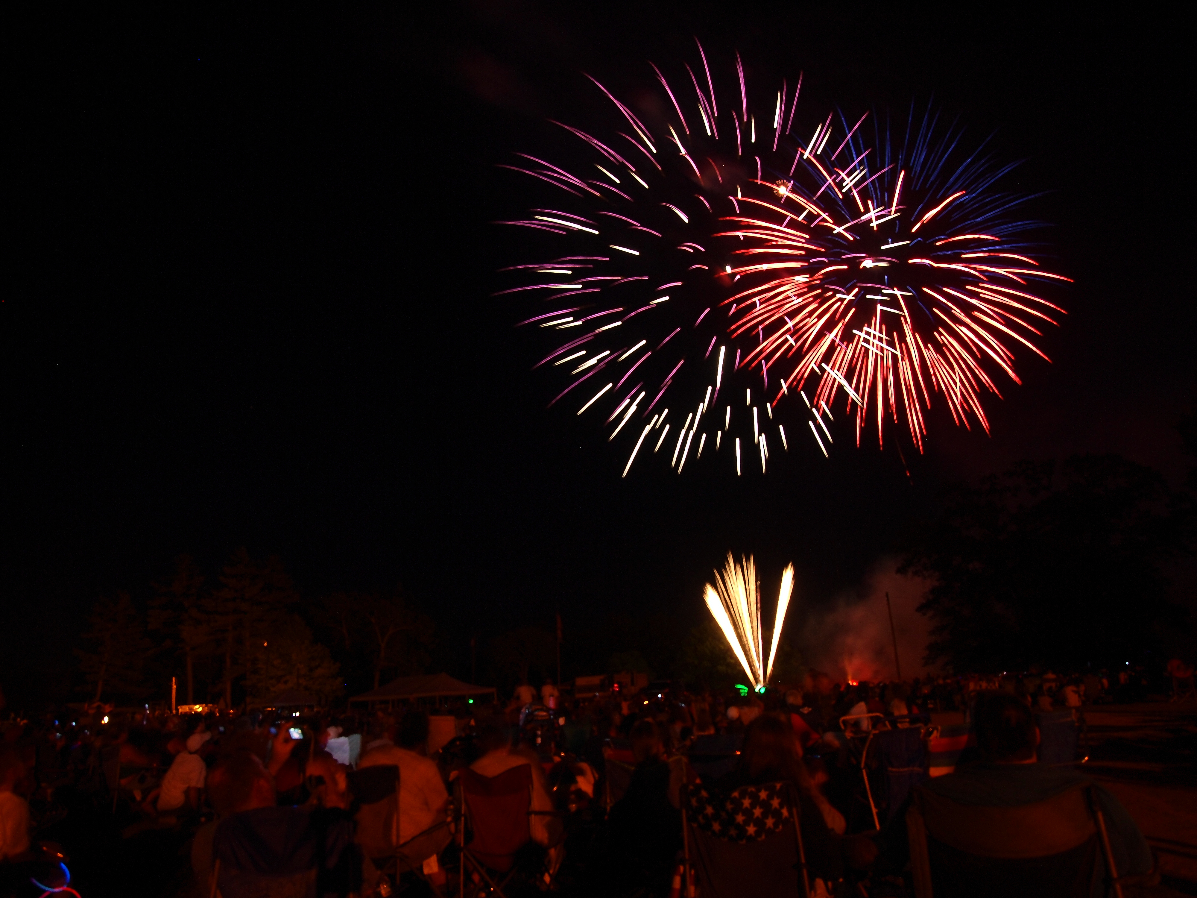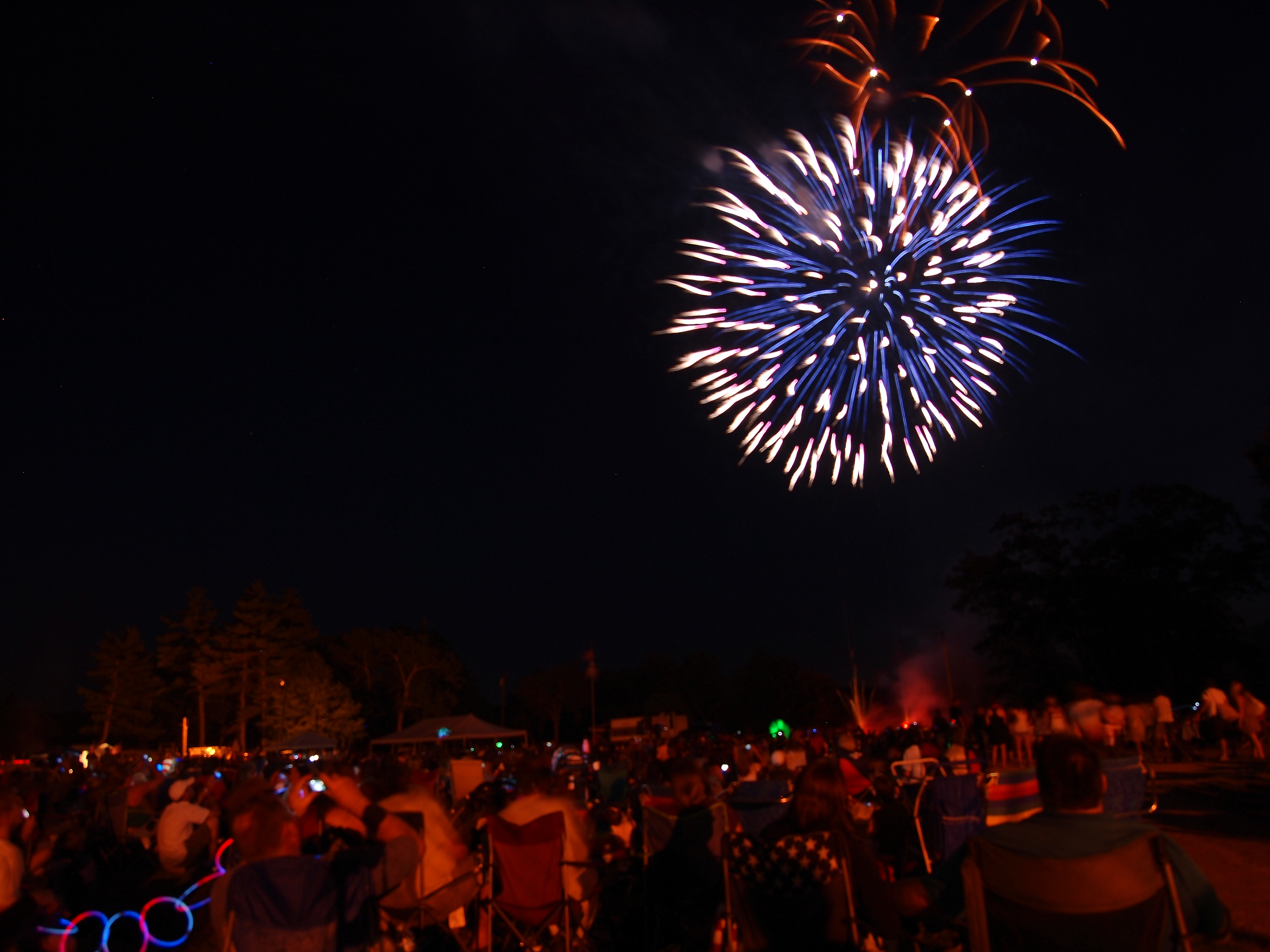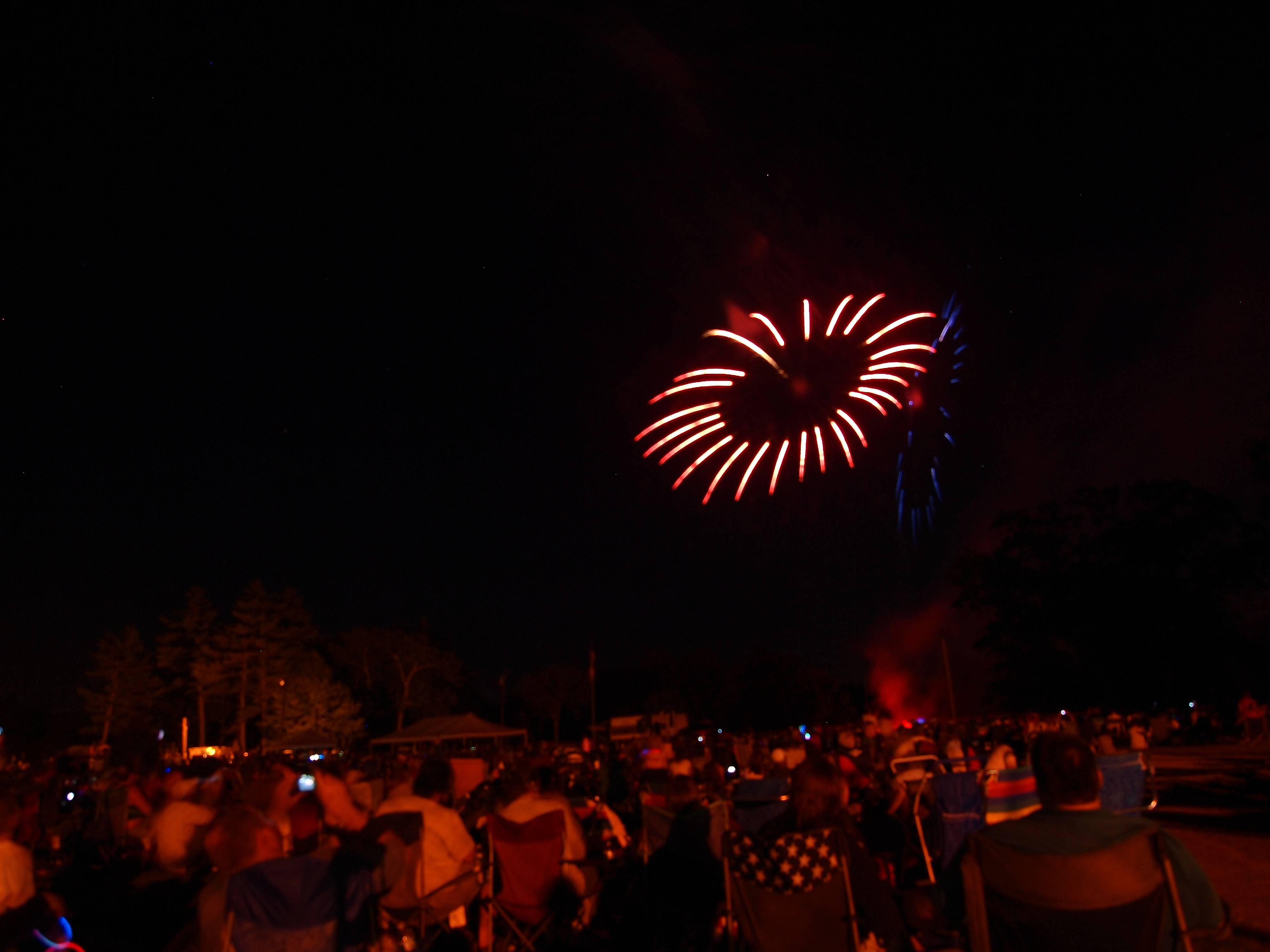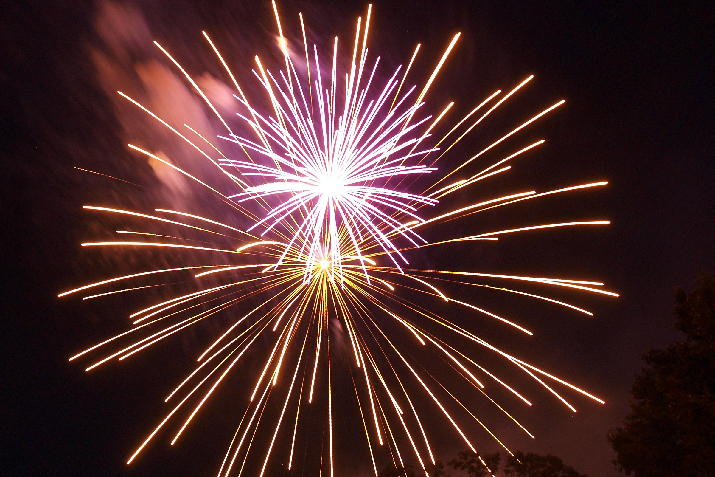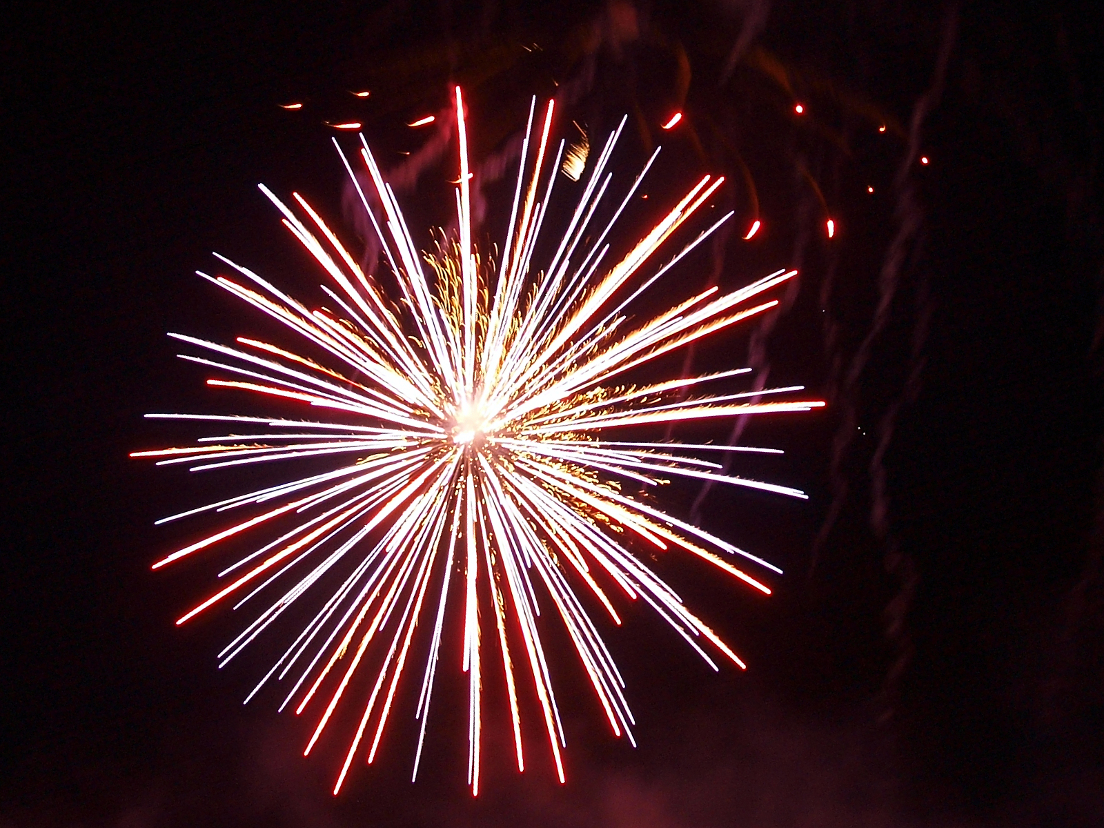 Picture #8: Ayer fireworks #8 Thumb: 480x320, 54,137 bytes (53K) Small: 800x556, 101,857 bytes (100K), (html file) Large: 2400x1600, 3,631,203 bytes (3.5M), (html file) Copyright, Michael Meissner 2010, All rights reserved Olympus E-3 camera with Olympus 14-54mm f/2.8-3.5 lens f/4.0, ISO 200, 3 sec, 14.0mm, bulb mode, vivid color, matrix metering, manual focus, noise reduction 35mm equivalent focal length 28.0mm Extra equipment used: tripod, wired shutter release Programs used: gimp Taken by Michael Meissner on July 03, 2010 21:36:55 Last modified on July 08, 2010 at 09:32 This picture is one of my favorites. |