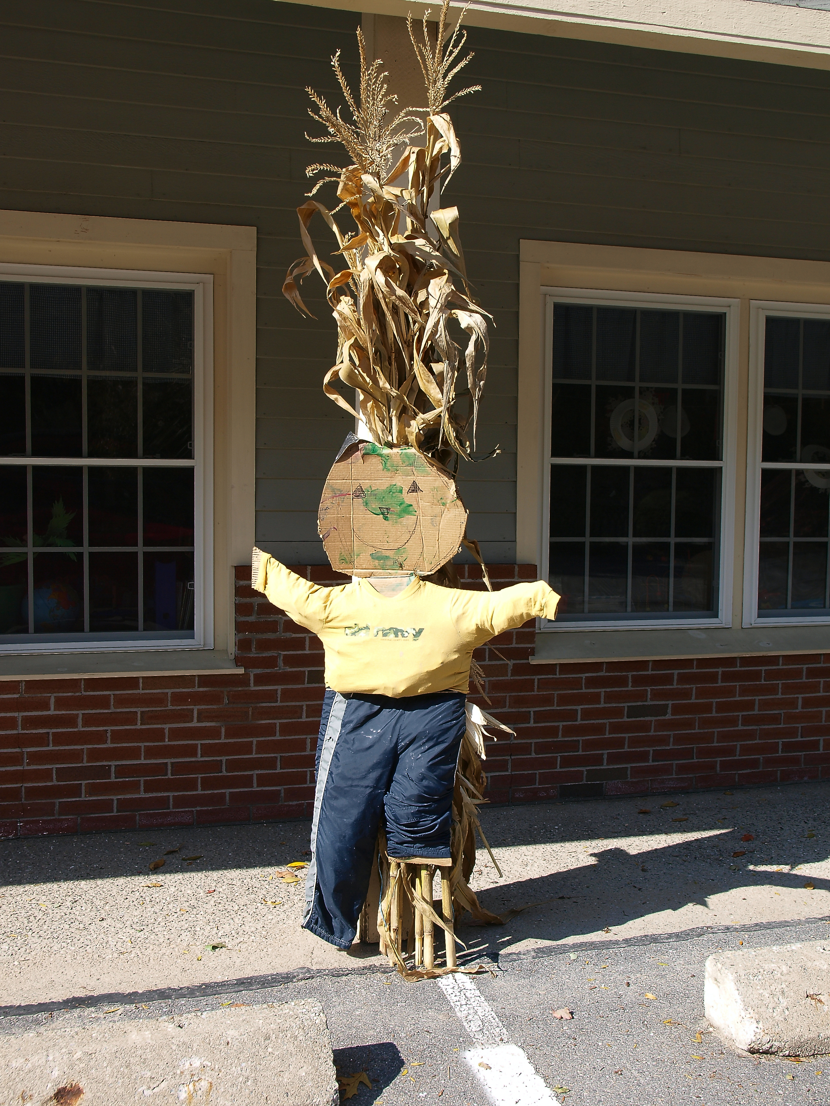 Picture #81: Daycare scarecrow #2 Small: 900x698, 133,049 bytes (130K), (html file) Large: 3600x2700, 9,225,336 bytes (8.8M), (html file) Copyright, Michael Meissner 2010, All rights reserved Olympus E-3 camera with Olympus 14-54mm f/2.8-3.5 lens f/5.6, ISO 100, 1/250 sec, 22.0mm, auto mode, natural color, SHQ, matrix metering, IS1 (All Direction Shake IS) 35mm equivalent focal length 44.0mm Programs used: default crop, gimp Taken by Michael Meissner on October 17, 2010 11:51:38 Last modified on October 20, 2010 at 21:12 |