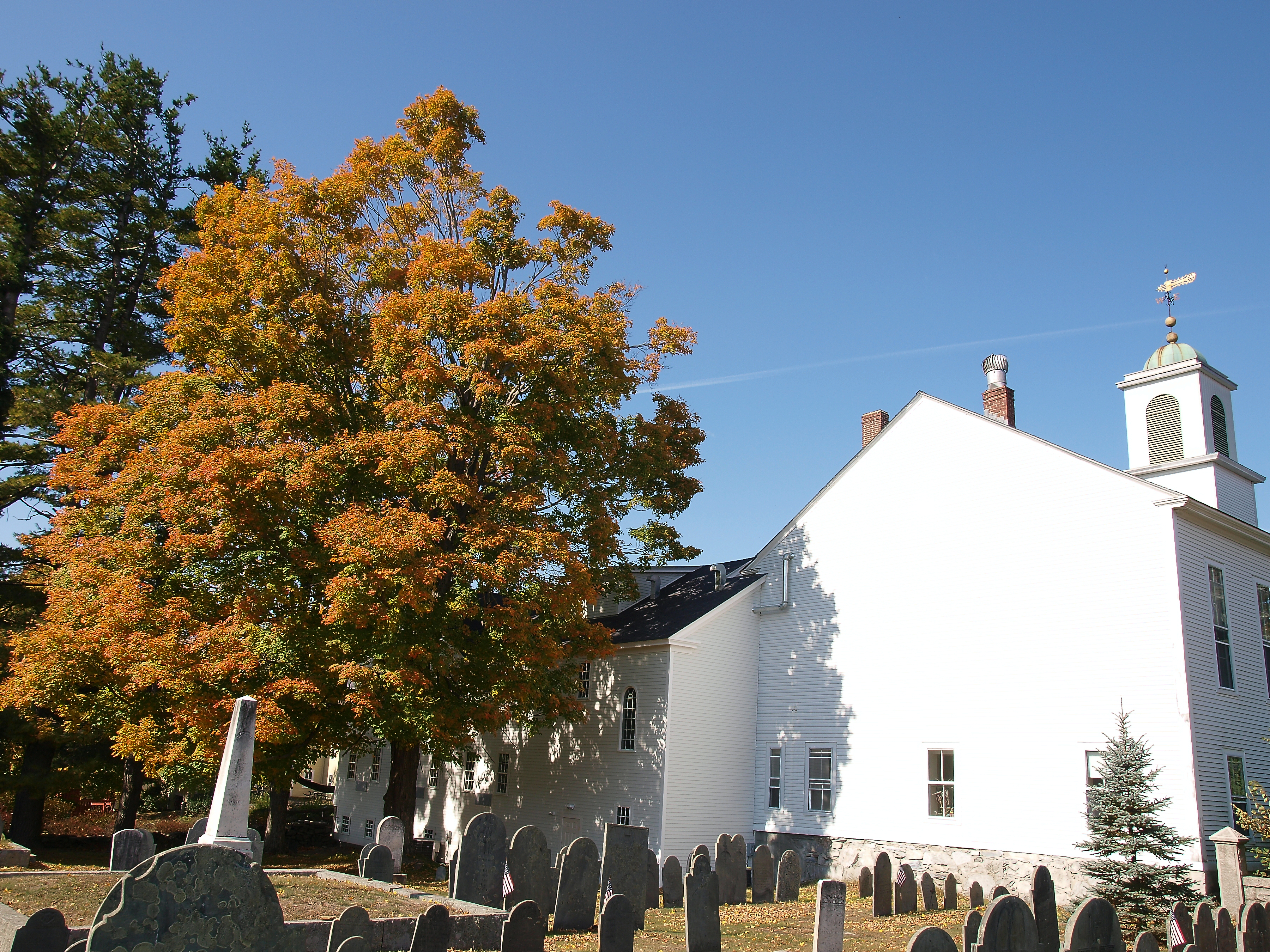 Picture #111: Groton church Small: 800x623, 122,435 bytes (120K), (html file) Large: 2400x1800, 4,509,953 bytes (4.3M), (html file) Copyright, Michael Meissner 2010, All rights reserved Olympus E-3 camera with Olympus 14-54mm f/2.8-3.5 lens f/8.0, ISO 100, 1/500 sec, 37.0mm, auto mode, natural color, SHQ, matrix metering, IS1 (All Direction Shake IS) 35mm equivalent focal length 74.0mm Programs used: gimp Taken by Michael Meissner on October 16, 2010 14:01:35 Last modified on October 16, 2010 at 23:23 This picture is one of my favorites. |