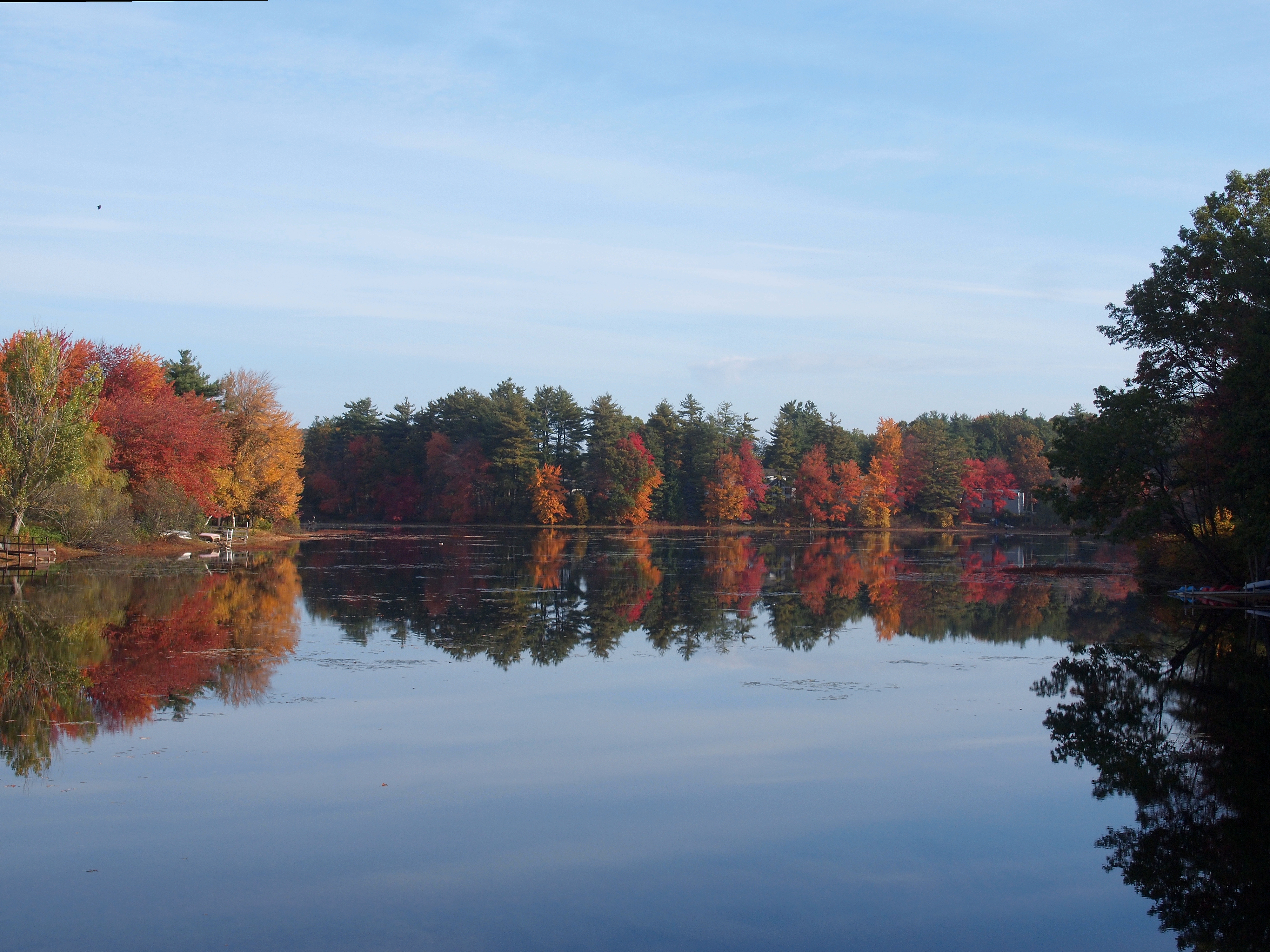 Picture #83: Fall at Spectacle Pond #2 Small: 900x698, 206,618 bytes (202K), (html file) Large: 3600x2700, 10,182,484 bytes (9.7M), (html file) Copyright, Michael Meissner 2010, All rights reserved Olympus E-3 camera with Olympus 14-54mm f/2.8-3.5 lens f/3.0, ISO 1250, 1/60 sec, 23.0mm, auto mode, natural color, SHQ, matrix metering, IS1 (All Direction Shake IS) 35mm equivalent focal length 46.0mm Programs used: default crop, gimp Taken by Michael Meissner on October 16, 2010 17:59:00 Last modified on October 17, 2010 at 22:38 |