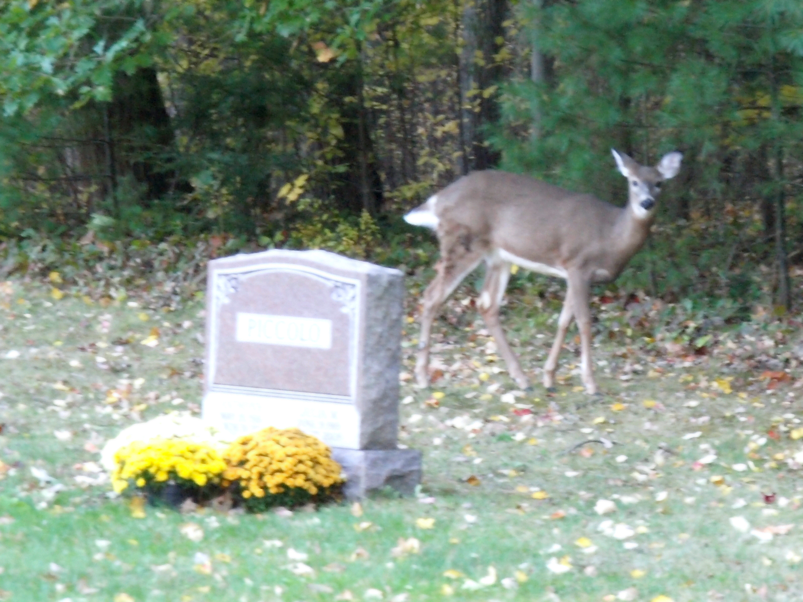 Picture #7: Deer in the cemetary #2 Small: 800x623, 88,762 bytes (87K), (html file) Large: 1600x1200, 1,705,445 bytes (1.6M), (html file) Copyright, Michael Meissner 2010, All rights reserved Olympus E-3 camera with Olympus 14-54mm f/2.8-3.5 lens f/3.5, ISO 1250, 1/100 sec, 54.0mm, auto mode, natural color, SHQ, matrix metering, IS1 (All Direction Shake IS) 35mm equivalent focal length 108.0mm Programs used: gimp Taken by Michael Meissner on October 23, 2010 16:39:33 Last modified on November 01, 2010 at 07:57 |