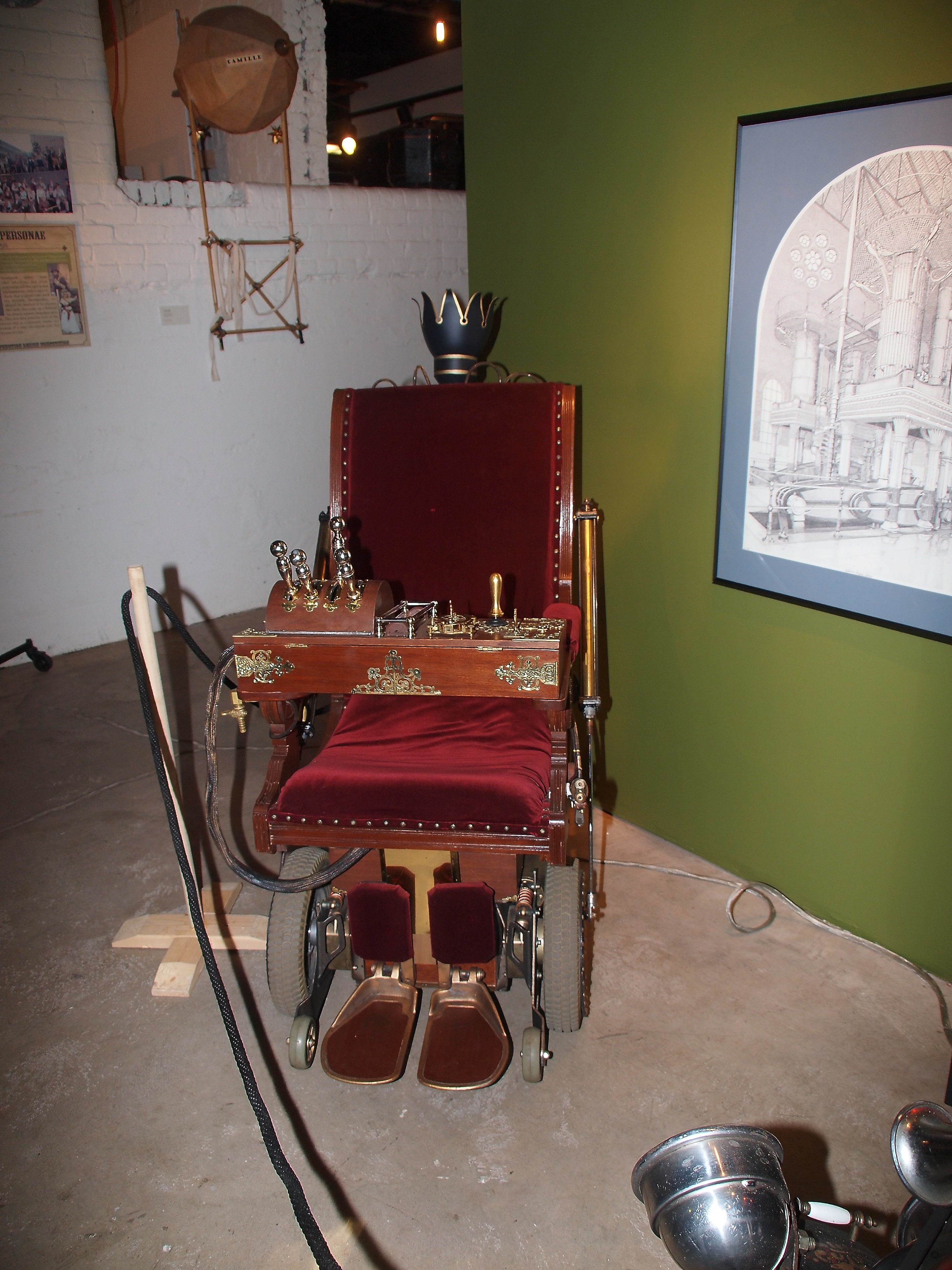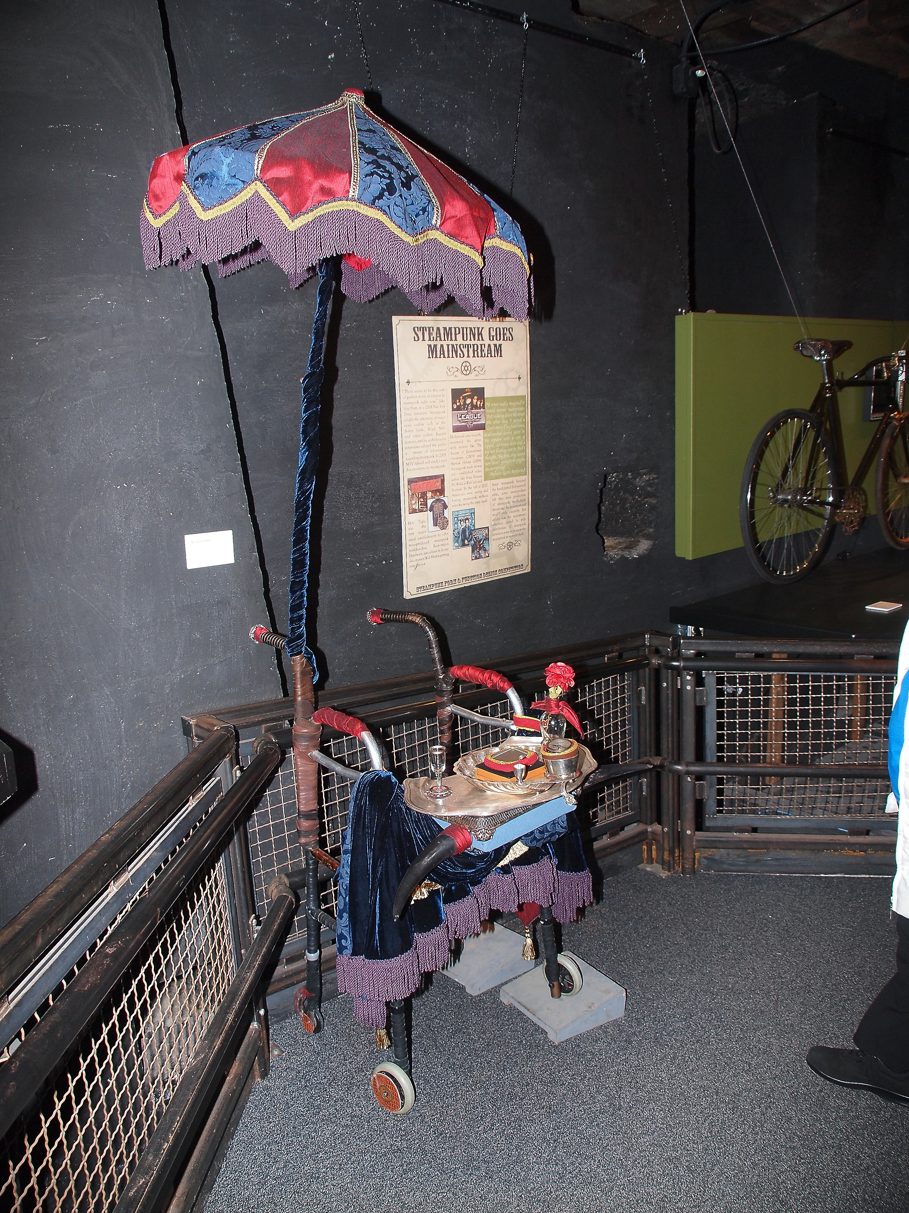 Picture #59: Back of the steampunk wheelchair Small: 750x1023, 160,514 bytes (157K), (html file) Large: 3000x4000, 10,475,409 bytes (10.0M), (html file) Copyright, Michael Meissner 2010, All rights reserved Olympus E-P2 camera with Olympus-m43 14-150mm f/4.0-5.6 lens f/4.0, ISO 200, FL-36 flash, 1/60 sec, 14.0mm, auto mode, vivid color, matrix metering, auto + manual focus, IS1 (All Direction Shake IS), noise reduction auto 35mm equivalent focal length 28.0mm Extra equipment used: Olympus FL-36 flash Programs used: default crop, gimp Taken by Michael Meissner on December 05, 2010 13:54:20 Last modified on December 05, 2010 at 23:06 |