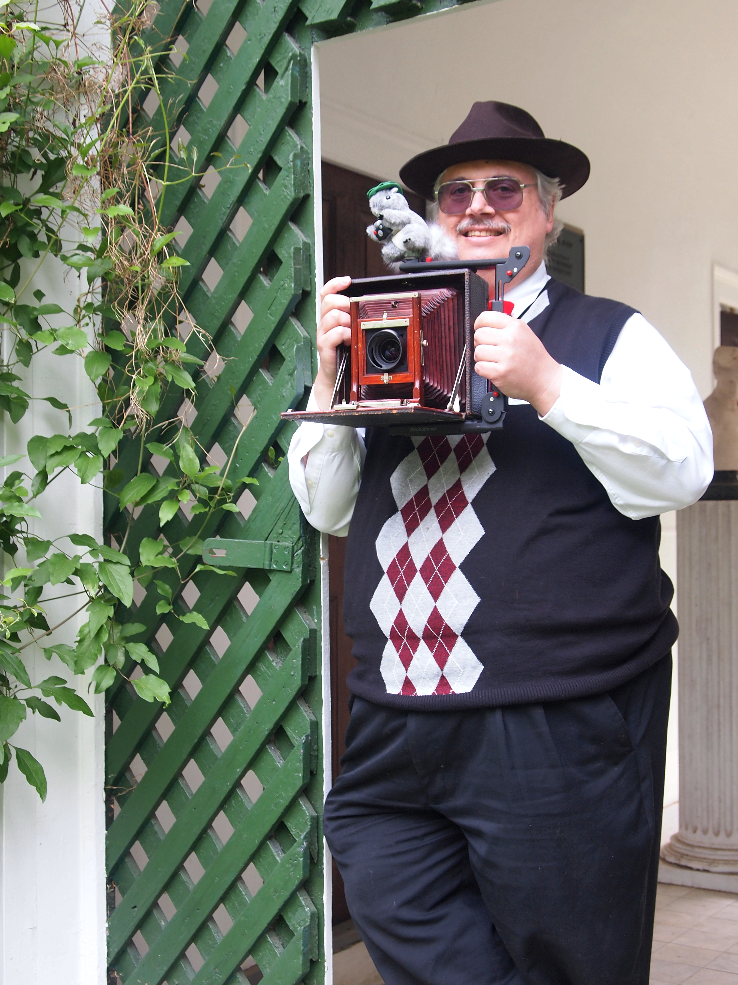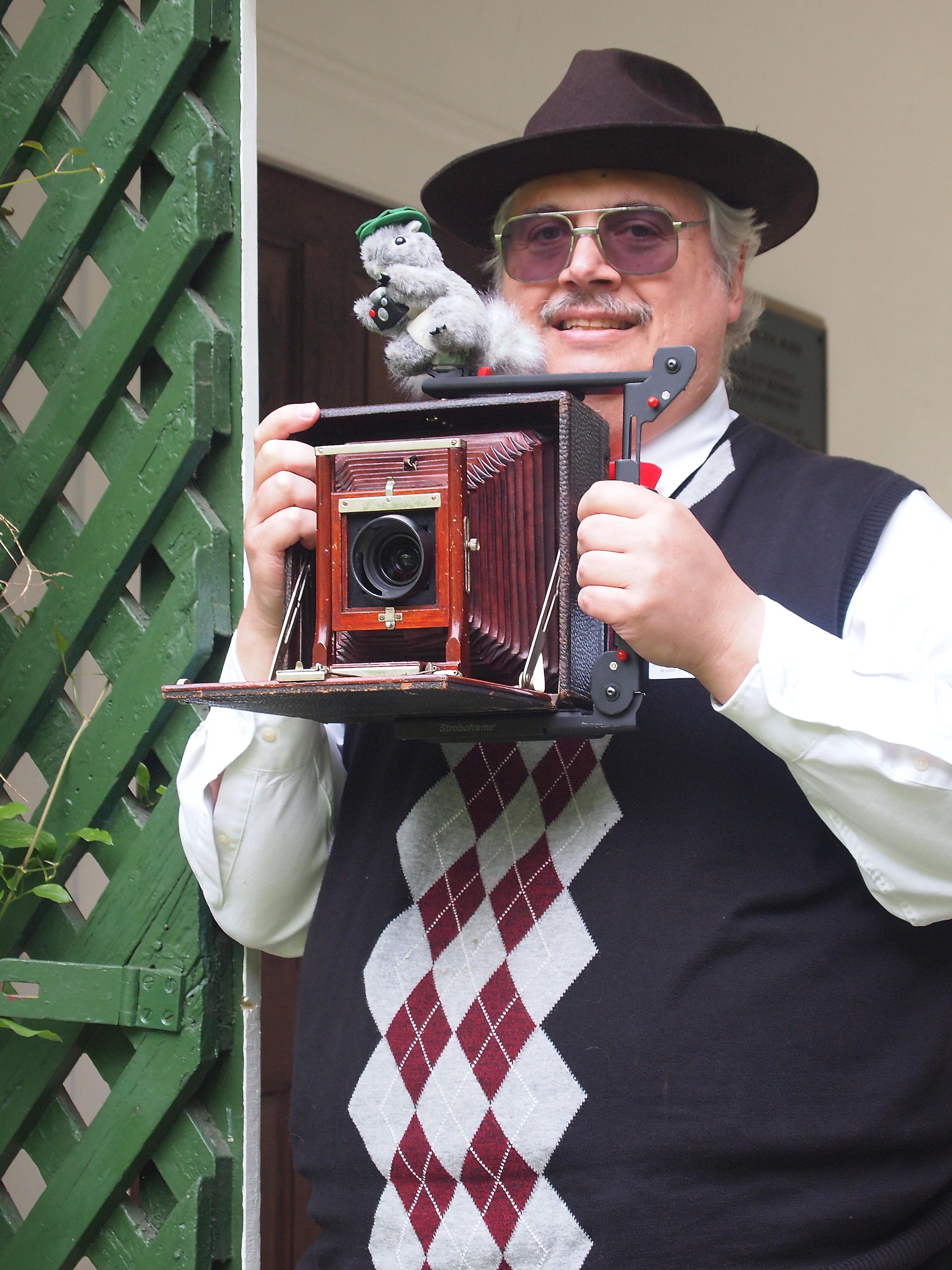 Picture #25: Picture of me as a 1930's news photographer #2 Small: 750x1023, 131,856 bytes (129K), (html file) Large: 3000x4000, 8,704,132 bytes (8.3M), (html file) Copyright, Michael Meissner 2010, All rights reserved Olympus E-PL1 camera with Olympus-m43 14-42mm f/3.5-5.6 lens f/5.4, ISO 320, 1/80 sec, 38.0mm, auto mode, vivid color, HQ, matrix metering, IS1 (All Direction Shake IS), noise reduction auto 35mm equivalent focal length 76.0mm Programs used: default crop, gimp, rotate Taken by Michael Meissner on May 22, 2010 09:42:42 Last modified on February 20, 2011 at 13:22 This picture is one of my favorites. |