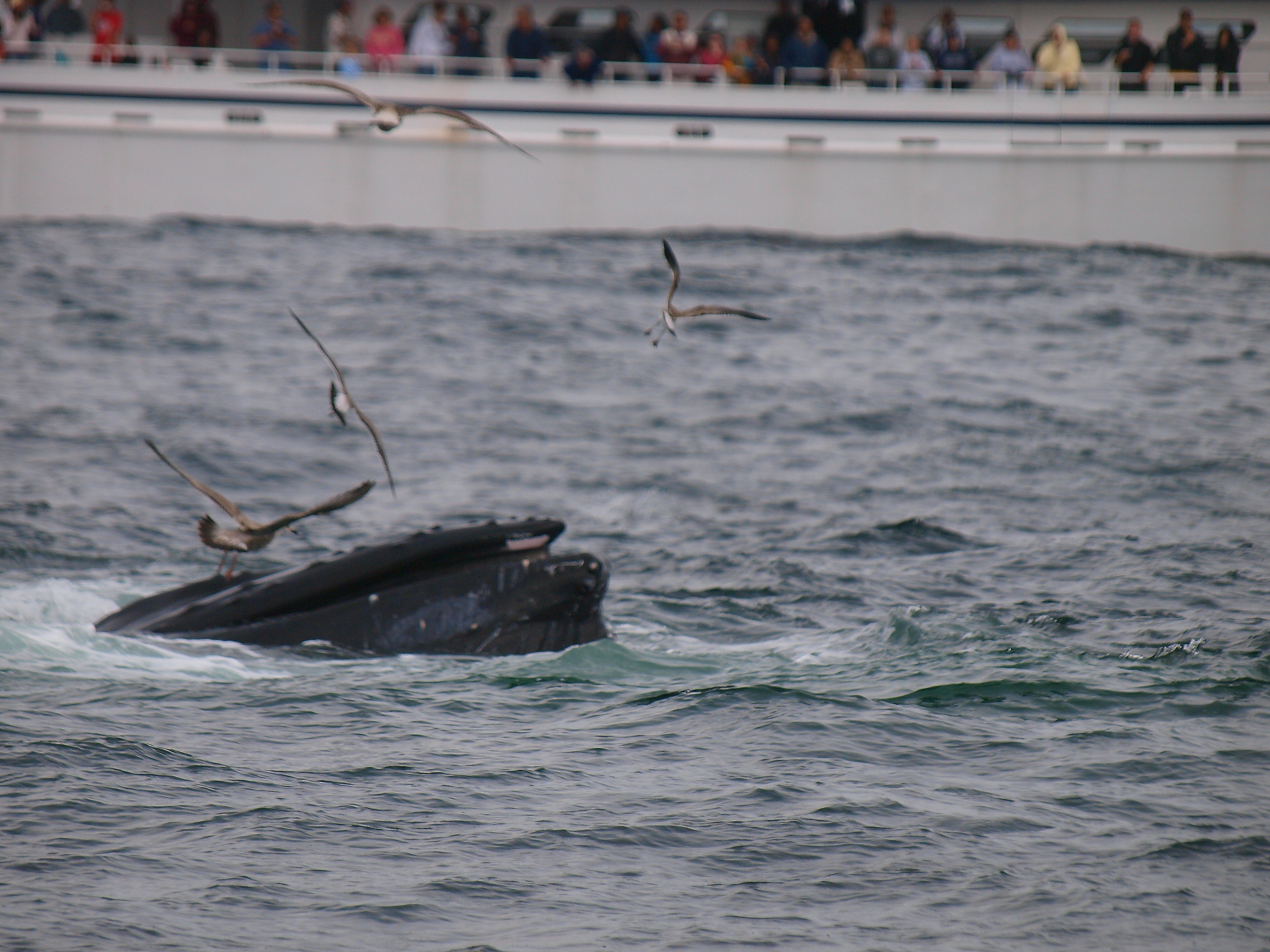 Picture #46: Whale feeding Small: 800x623, 139,093 bytes (136K), (html file) Large: 2400x1800, 4,634,083 bytes (4.4M), (html file) Copyright, Michael Meissner 2010, All rights reserved Olympus E-1 camera with Olympus 14-54mm f/2.8-3.5 lens f/5.0, ISO 100, 1/200 sec, 44.0mm, auto mode, SHQ, matrix metering, +2 contrast, +2 sharpening, manual focus 35mm equivalent focal length 88.0mm Programs used: default crop, gimp Taken by Michael Meissner on August 15, 2010 15:41:21 Last modified on September 20, 2010 at 09:00 This picture is one of my favorites. |