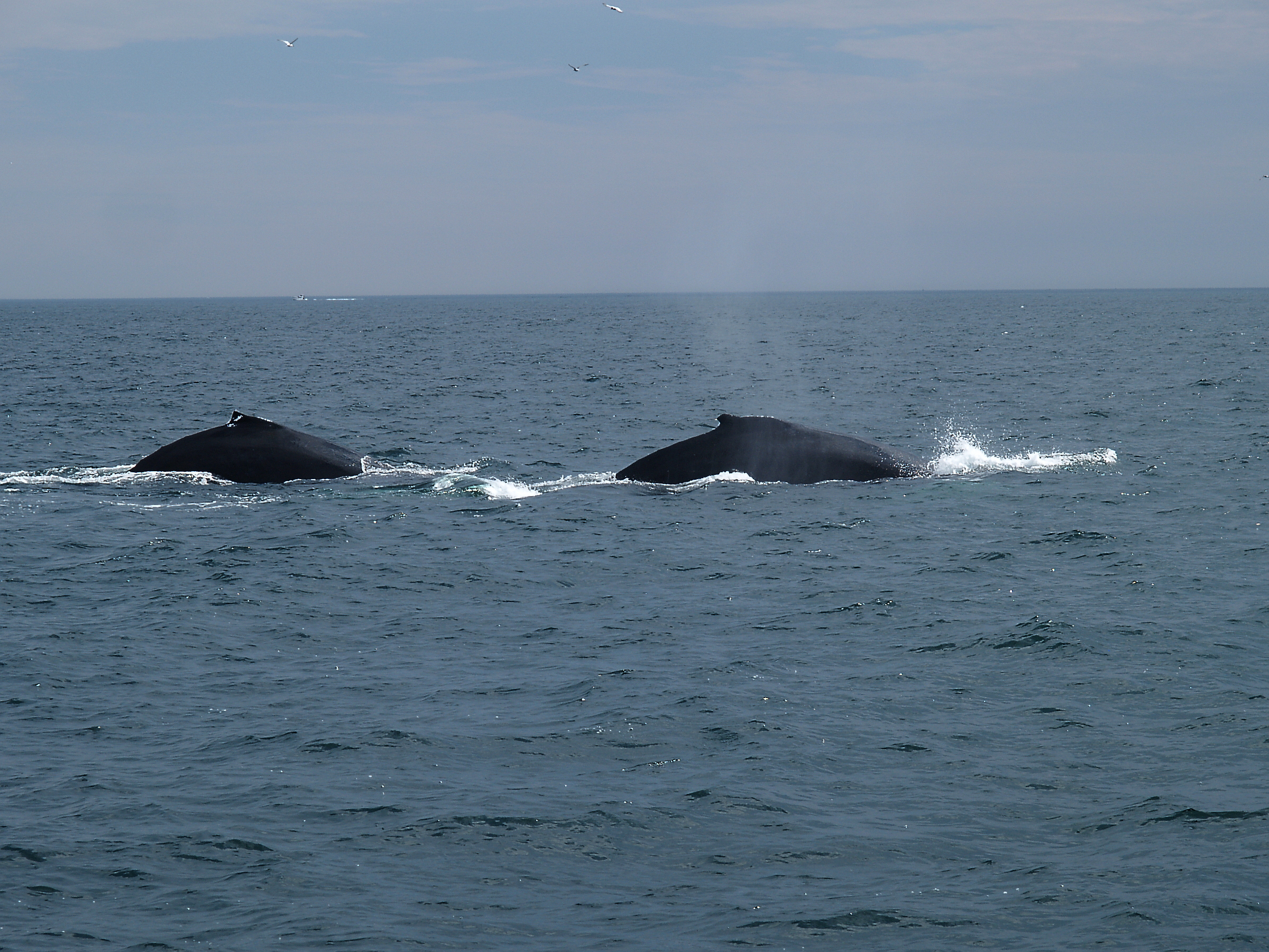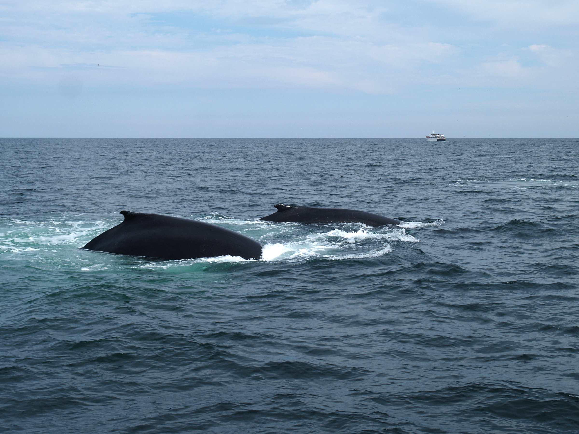 Picture #26: Whales surfacing Small: 900x698, 80,674 bytes (79K), (html file) Large: 3600x2700, 7,094,341 bytes (6.8M), (html file) Copyright, Michael Meissner 2010, All rights reserved Olympus E-3 camera with Olympus 50-200mm f/2.8-3.5 lens and Olympus EC-14 (1.4x) f/4.0, ISO 160, 1/1600 sec, 124.0mm, shutter priority, vivid color, matrix metering, IS1 (All Direction Shake IS) 35mm equivalent focal length 248.0mm, EC-14 Programs used: default crop, gimp Taken by Michael Meissner on August 15, 2010 15:54:29 Last modified on September 26, 2010 at 23:17 |