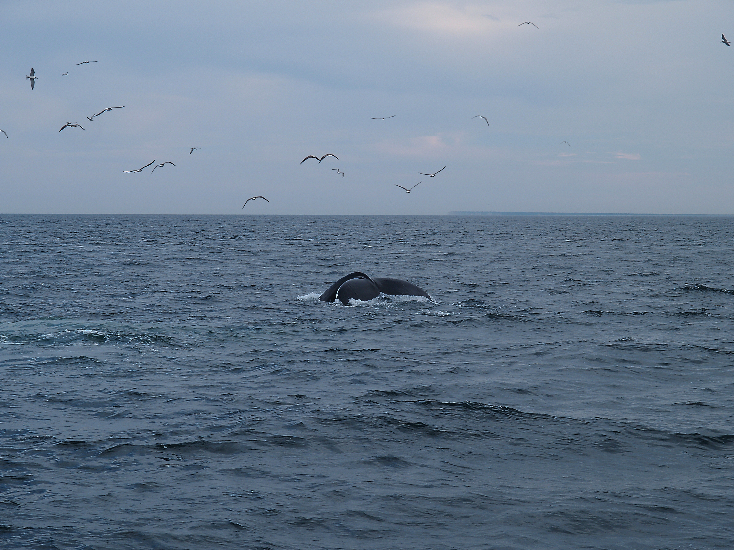 Picture #19: Whale diving Small: 800x623, 86,280 bytes (85K), (html file) Large: 2400x1800, 3,927,556 bytes (3.7M), (html file) Copyright, Michael Meissner 2010, All rights reserved Olympus E-3 camera with Olympus 50-200mm f/2.8-3.5 lens and Olympus EC-14 (1.4x) f/4.0, ISO 250, 1/1600 sec, 97.0mm, shutter priority, vivid color, matrix metering, IS1 (All Direction Shake IS) 35mm equivalent focal length 194.0mm, EC-14 Programs used: gimp Taken by Michael Meissner on August 15, 2010 16:12:00 Last modified on September 26, 2010 at 23:56 |