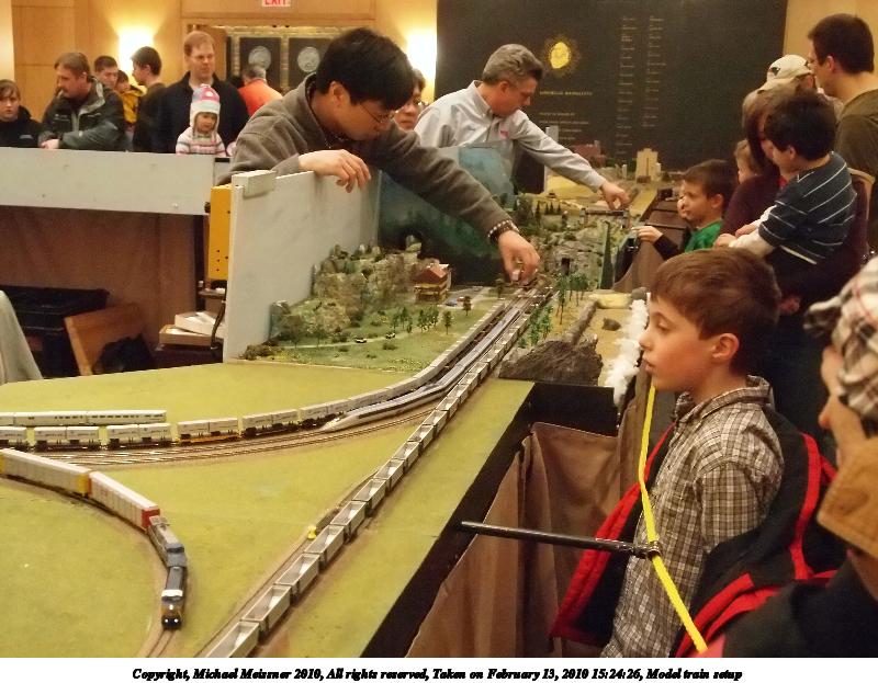 Picture #10: Model train setup #2 800x623, 103,708 bytes (102K), (html file) Copyright, Michael Meissner 2010, All rights reserved Olympus E-P2 camera with Olympus-m43 14-42mm f/3.5-5.6 lens f/4.1, ISO 3200, 1/30 sec, 21.0mm, auto mode, natural color, matrix metering, continous focus, IS1 (All Direction Shake IS), noise reduction auto 35mm equivalent focal length 42.0mm Programs used: NoiseNinja, gimp Taken by Michael Meissner on February 13, 2010 15:24:26 Last modified on March 25, 2010 at 21:55 |