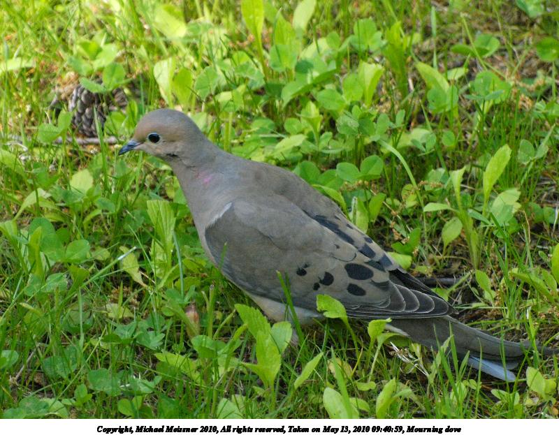 Picture #14: Mourning dove 800x623, 127,592 bytes (125K), (html file) Copyright, Michael Meissner 2010, All rights reserved Olympus E-3 camera with Olympus 70-300mm f/4.0-5.6 lens and Olympus EC-14 (1.4x) f/7.8, ISO 2000, 1/250 sec, 357.0mm, auto mode, vivid color, matrix metering, IS1 (All Direction Shake IS) 35mm equivalent focal length 715.0mm, EC-14 Programs used: gimp Taken by Michael Meissner on May 13, 2010 09:40:59 Last modified on May 17, 2010 at 08:06 |