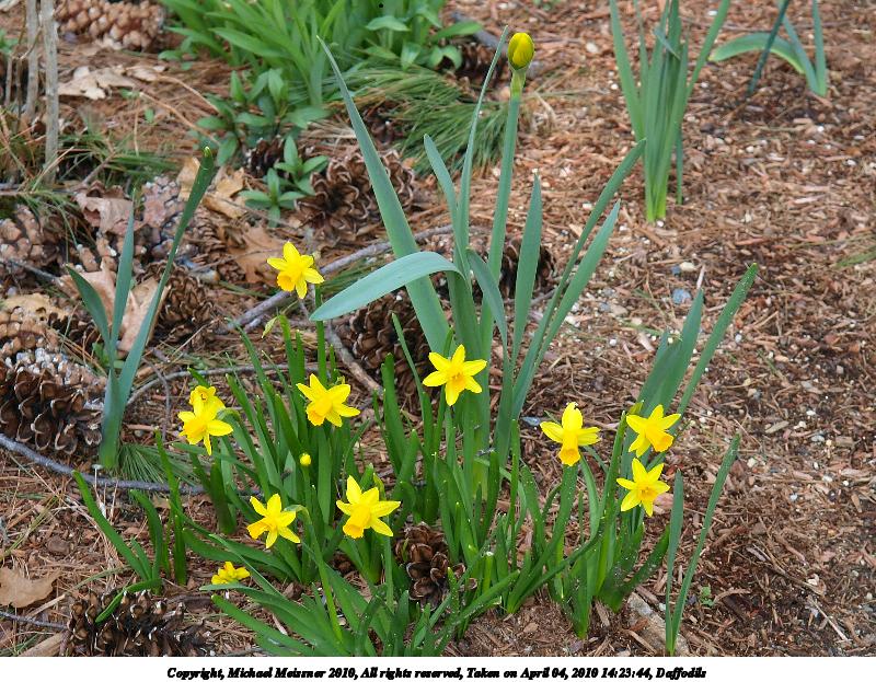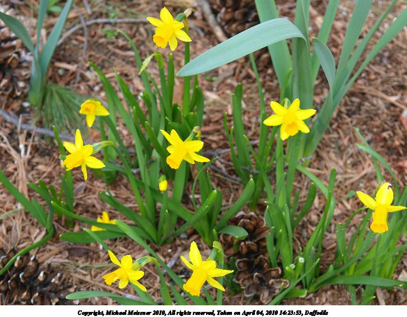 Picture #34: Daffodils 800x623, 163,058 bytes (160K), (html file) Copyright, Michael Meissner 2010, All rights reserved Olympus E-3 camera with Olympus 14-54mm f/2.8-3.5 lens f/5.6, ISO 200, 1/125 sec, 54.0mm, aperture priority, vivid color, matrix metering, IS1 (All Direction Shake IS) 35mm equivalent focal length 108.0mm Programs used: gimp Taken by Michael Meissner on April 04, 2010 14:23:44 Last modified on April 04, 2010 at 16:59 |