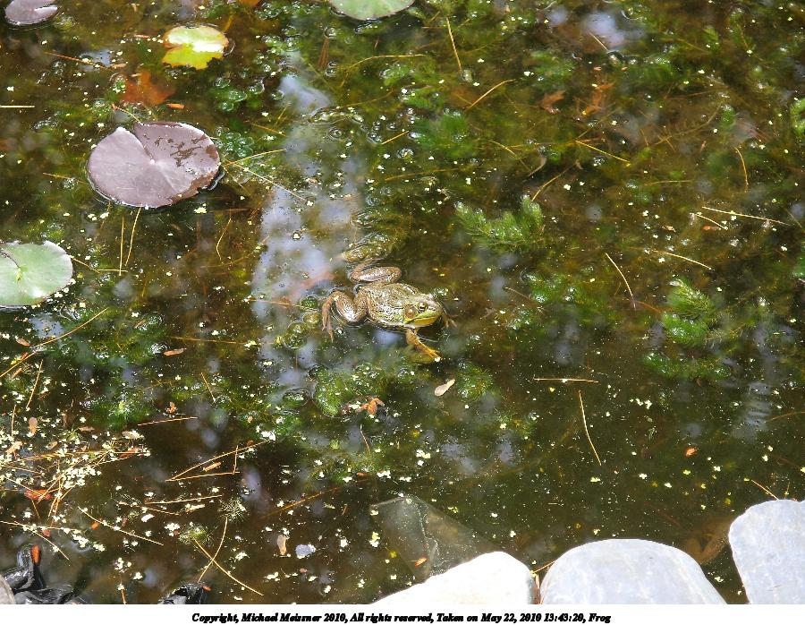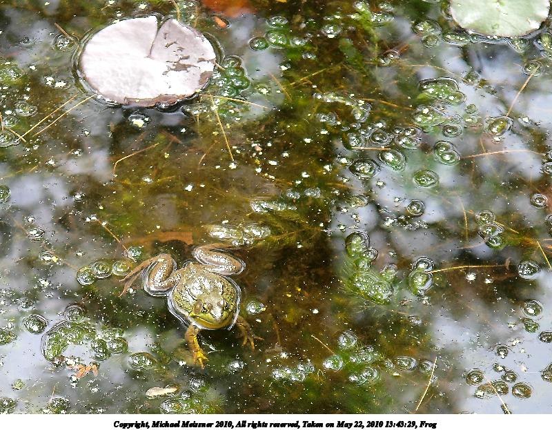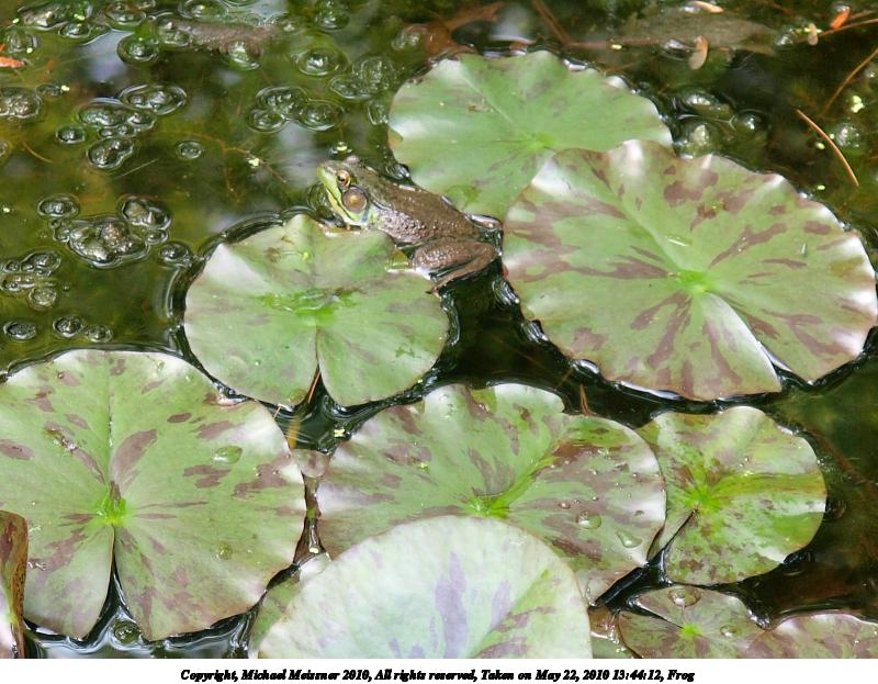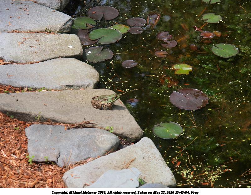 Picture #26: Frog #3 800x623, 162,426 bytes (159K), (html file) Copyright, Michael Meissner 2010, All rights reserved Olympus E-3 camera with Olympus 14-54mm f/2.8-3.5 lens f/3.5, ISO 125, 1/100 sec, 49.0mm, auto mode, vivid color, auto gradation, matrix metering, IS1 (All Direction Shake IS) 35mm equivalent focal length 98.0mm Programs used: default crop, gimp Taken by Michael Meissner on May 22, 2010 13:43:29 Last modified on December 14, 2010 at 23:21 |