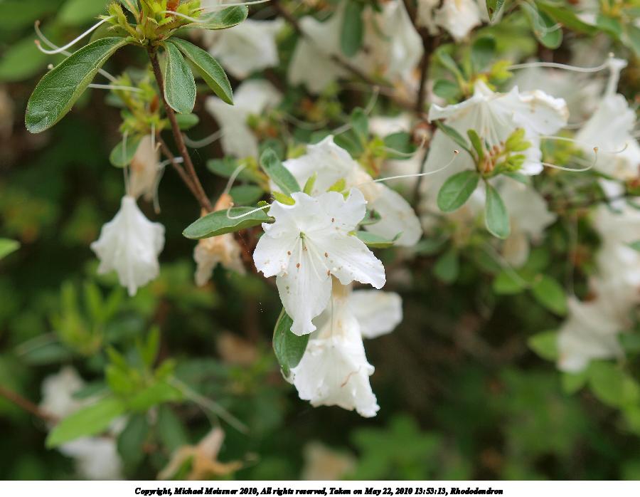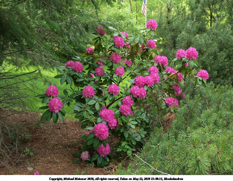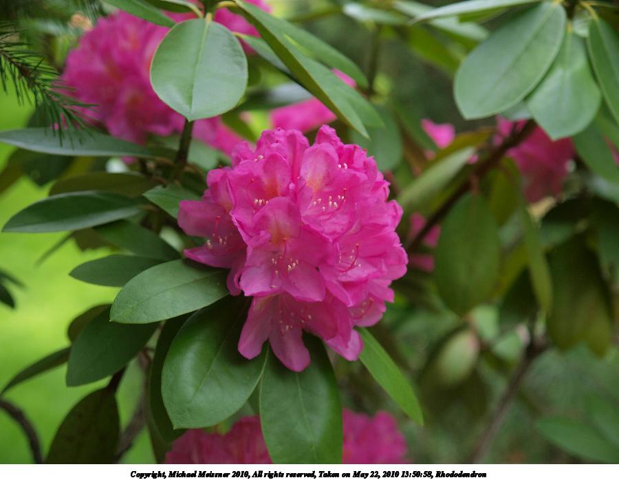 Picture #8: Rhododendron #5 900x698, 83,646 bytes (82K), (html file) Copyright, Michael Meissner 2010, All rights reserved Olympus E-3 camera with Olympus 14-54mm f/2.8-3.5 lens f/3.5, ISO 100, 1/250 sec, 40.0mm, shutter priority, vivid color, auto gradation, matrix metering, IS1 (All Direction Shake IS) 35mm equivalent focal length 80.0mm Programs used: default crop, gimp Taken by Michael Meissner on May 22, 2010 13:53:13 Last modified on December 14, 2010 at 23:51 |