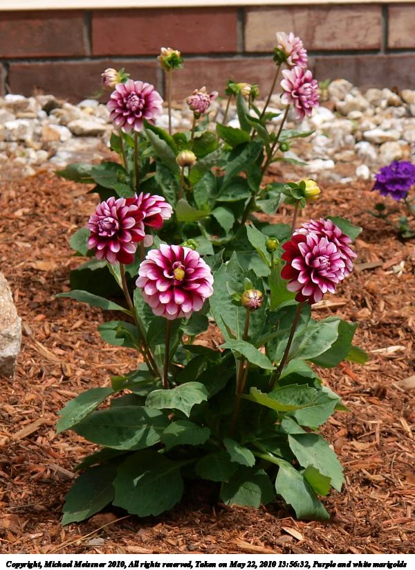 Picture #5: Purple and white marigolds 600x823, 123,234 bytes (121K), (html file) Copyright, Michael Meissner 2010, All rights reserved Olympus E-3 camera with Olympus 14-54mm f/2.8-3.5 lens f/7.1, ISO 100, 1/250 sec, 52.0mm, shutter priority, vivid color, auto gradation, matrix metering, IS1 (All Direction Shake IS) 35mm equivalent focal length 104.0mm Programs used: gimp Taken by Michael Meissner on May 22, 2010 13:56:32 Last modified on December 14, 2010 at 23:56 |