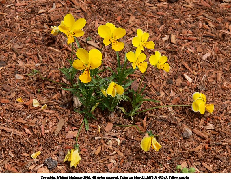 Picture #4: Yellow pansies 800x623, 184,615 bytes (181K), (html file) Copyright, Michael Meissner 2010, All rights reserved Olympus E-3 camera with Olympus 14-54mm f/2.8-3.5 lens f/8.0, ISO 100, 1/250 sec, 52.0mm, shutter priority, vivid color, auto gradation, matrix metering, IS1 (All Direction Shake IS) 35mm equivalent focal length 104.0mm Programs used: gimp Taken by Michael Meissner on May 22, 2010 13:56:41 Last modified on December 14, 2010 at 23:57 |