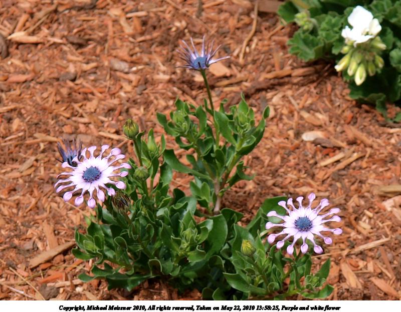 Picture #1: Purple and white flower 800x623, 113,625 bytes (111K), (html file) Copyright, Michael Meissner 2010, All rights reserved Olympus E-3 camera with Olympus 14-54mm f/2.8-3.5 lens f/7.1, ISO 100, 1/250 sec, 54.0mm, shutter priority, vivid color, auto gradation, matrix metering, IS1 (All Direction Shake IS) 35mm equivalent focal length 108.0mm Programs used: gimp Taken by Michael Meissner on May 22, 2010 13:58:25 Last modified on December 15, 2010 at 00:03 |