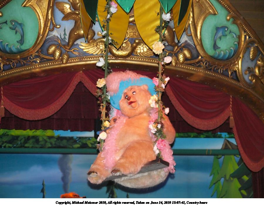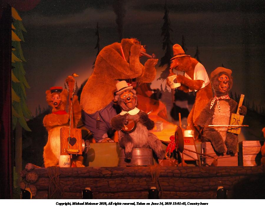 Picture #8: Country bears #4 Thumb: 450x338, 46,176 bytes (46K) Small: 900x698, 105,876 bytes (104K), (html file) Copyright, Michael Meissner 2010, All rights reserved Olympus E-3 camera with Olympus 14-54mm f/2.8-3.5 lens f/3.4, ISO 1600, flash, 1/100 sec, 47.0mm, auto mode, vivid color, auto gradation, matrix metering, IS1 (All Direction Shake IS) 35mm equivalent focal length 94.0mm Programs used: default crop, gimp, neatimage Taken by Michael Meissner on June 14, 2010 15:07:43 Last modified on March 06, 2011 at 08:01 |