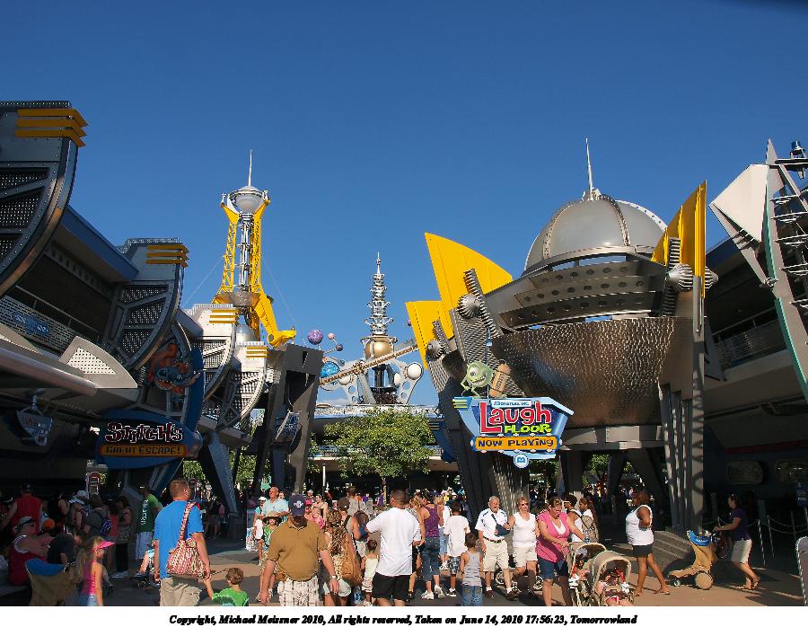 Picture #21: Tomorrowland #2 Thumb: 450x338, 52,798 bytes (52K) Small: 900x698, 141,220 bytes (138K), (html file) Copyright, Michael Meissner 2010, All rights reserved Olympus E-3 camera with Olympus 14-54mm f/2.8-3.5 lens f/7.1, ISO 100, 1/400 sec, 14.0mm, auto mode, vivid color, auto gradation, matrix metering, IS1 (All Direction Shake IS) 35mm equivalent focal length 28.0mm Programs used: default crop, gimp Taken by Michael Meissner on June 14, 2010 17:56:23 Last modified on March 06, 2011 at 08:20 |