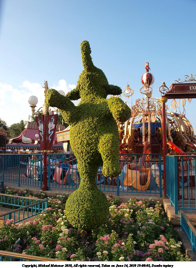 Picture #26: Dumbo topiary Thumb: 338x450, 63,493 bytes (63K) Small: 675x923, 168,606 bytes (165K), (html file) Copyright, Michael Meissner 2010, All rights reserved Olympus E-3 camera with Olympus 14-54mm f/2.8-3.5 lens f/5.0, ISO 100, 1/250 sec, 14.0mm, auto mode, vivid color, auto gradation, matrix metering, IS1 (All Direction Shake IS) 35mm equivalent focal length 28.0mm Programs used: default crop, gimp Taken by Michael Meissner on June 14, 2010 19:08:05 Last modified on March 06, 2011 at 08:27 |
