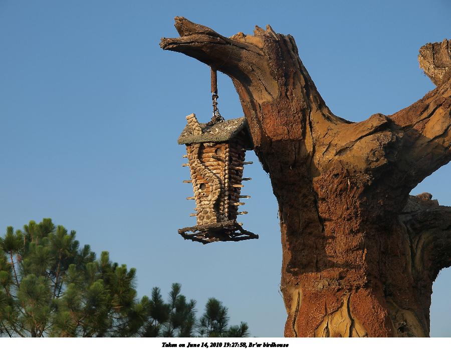 Picture #35: Br'er birdhouse #3 Thumb: 450x338, 38,733 bytes (38K) Small: 900x698, 95,051 bytes (93K), (html file) Olympus E-3 camera with Olympus 14-54mm f/2.8-3.5 lens f/6.3, ISO 100, 1/320 sec, 42.0mm, auto mode, vivid color, auto gradation, matrix metering, IS1 (All Direction Shake IS) 35mm equivalent focal length 84.0mm Programs used: default crop, gimp Taken by Michael Meissner on June 14, 2010 19:28:00 Last modified on March 06, 2011 at 09:11 |