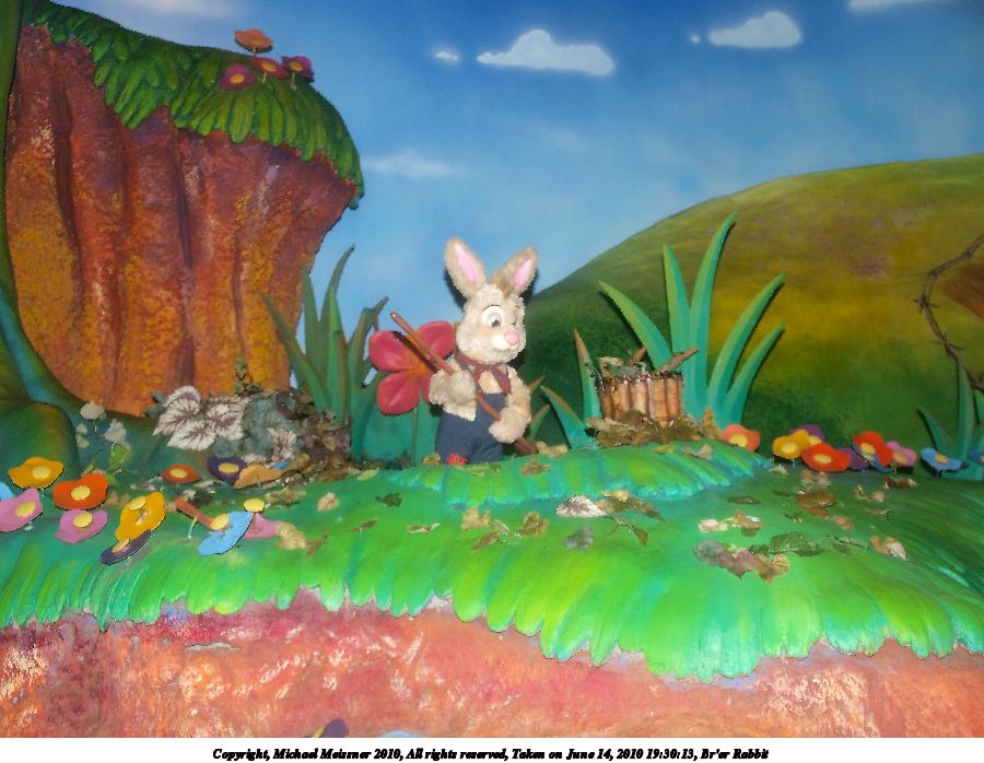 Picture #39: Br'er Rabbit Thumb: 450x338, 49,933 bytes (49K) Small: 900x698, 104,499 bytes (103K), (html file) Copyright, Michael Meissner 2010, All rights reserved Olympus E-3 camera with Olympus 14-54mm f/2.8-3.5 lens f/3.0, ISO 400, flash, 1/60 sec, 23.0mm, auto mode, vivid color, auto gradation, matrix metering, IS1 (All Direction Shake IS) 35mm equivalent focal length 46.0mm Programs used: default crop, gimp Taken by Michael Meissner on June 14, 2010 19:30:13 Last modified on March 06, 2011 at 08:52 |