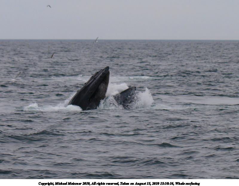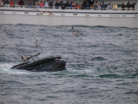 Picture #22: Whale feeding Thumb: 480x360, 52,957 bytes (52K) Small: 800x623, 139,093 bytes (136K), (html file) Copyright, Michael Meissner 2010, All rights reserved Olympus E-1 camera with Olympus 14-54mm f/2.8-3.5 lens f/5.0, ISO 100, 1/200 sec, 44.0mm, auto mode, SHQ, matrix metering, +2 contrast, +2 sharpening, manual focus 35mm equivalent focal length 88.0mm Programs used: default crop, gimp Taken by Michael Meissner on August 15, 2010 15:41:21 Last modified on September 20, 2010 at 09:00 This picture is one of my favorites. |