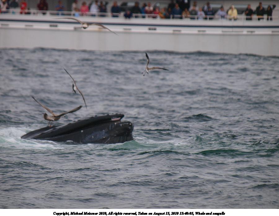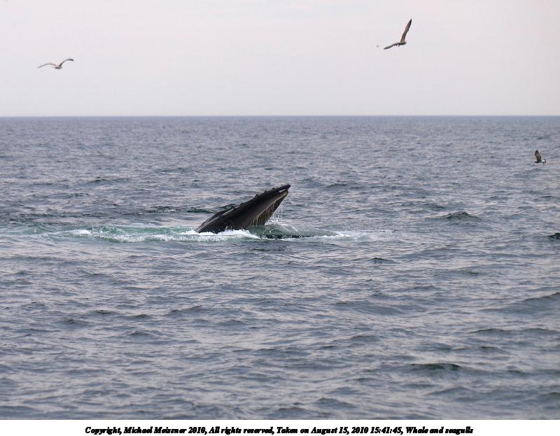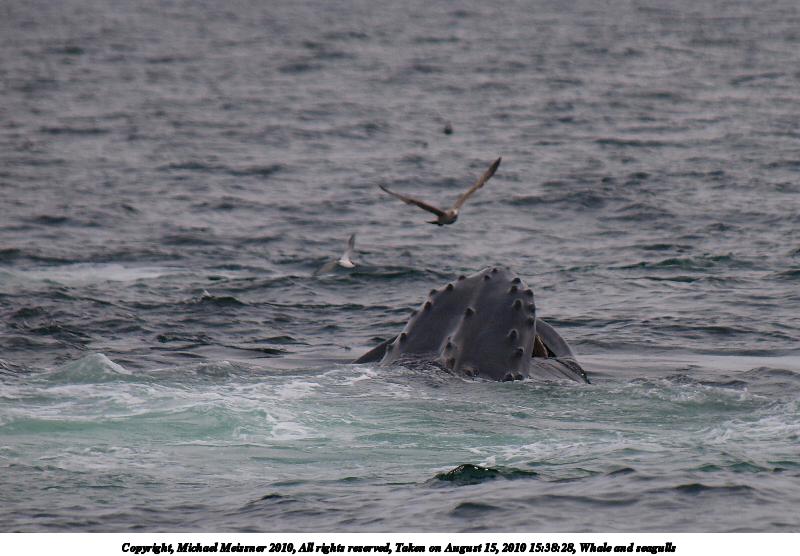 Picture #20: Whale and seagulls Thumb: 480x320, 41,930 bytes (41K) Small: 800x556, 81,270 bytes (80K), (html file) Copyright, Michael Meissner 2010, All rights reserved Olympus E-3 camera with Olympus 50-200mm f/2.8-3.5 lens and Olympus EC-14 (1.4x) f/4.8, ISO 250, 1/1600 sec, 258.0mm, shutter priority, vivid color, matrix metering, IS1 (All Direction Shake IS) 35mm equivalent focal length 517.0mm, EC-14 Programs used: gimp Taken by Michael Meissner on August 15, 2010 15:38:28 Last modified on September 20, 2010 at 08:57 |
