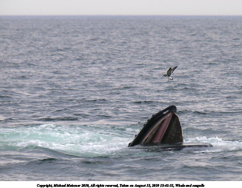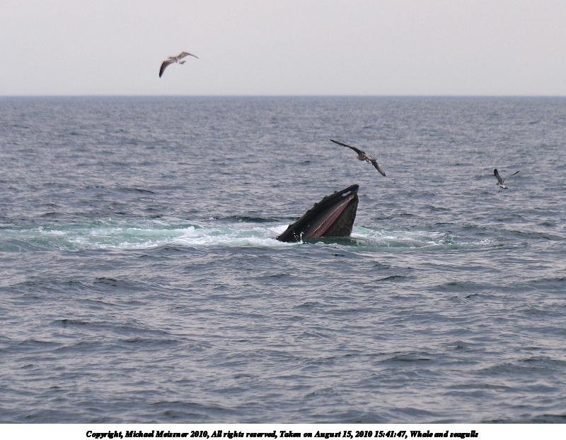 Picture #29: Whale and seagulls #5 Thumb: 480x360, 48,027 bytes (47K) Small: 800x623, 93,637 bytes (92K), (html file) Copyright, Michael Meissner 2010, All rights reserved Olympus E-3 camera with Olympus 50-200mm f/2.8-3.5 lens and Olympus EC-14 (1.4x) f/4.5, ISO 250, 1/1600 sec, 147.0mm, shutter priority, vivid color, matrix metering, IS1 (All Direction Shake IS) 35mm equivalent focal length 295.0mm, EC-14 Programs used: gimp Taken by Michael Meissner on August 15, 2010 15:41:51 Last modified on September 20, 2010 at 09:11 This picture is one of my favorites. |
