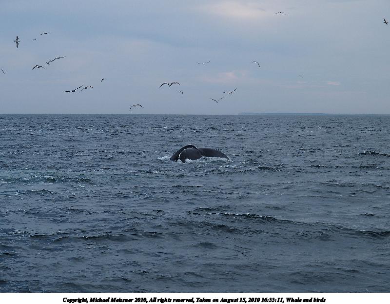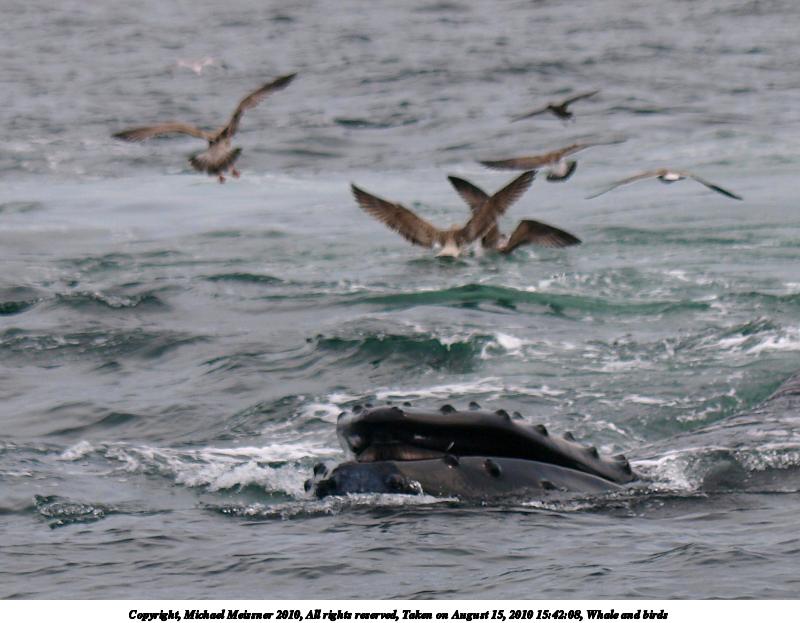 Picture #31: Whale and birds Thumb: 400x300, 36,566 bytes (36K) Small: 800x623, 79,488 bytes (78K), (html file) Copyright, Michael Meissner 2010, All rights reserved Olympus E-3 camera with Olympus 50-200mm f/2.8-3.5 lens and Olympus EC-14 (1.4x) f/4.0, ISO 200, 1/1600 sec, 87.0mm, shutter priority, vivid color, matrix metering, IS1 (All Direction Shake IS) 35mm equivalent focal length 174.0mm, EC-14 Programs used: gimp Taken by Michael Meissner on August 15, 2010 15:42:08 Last modified on September 25, 2010 at 09:20 |