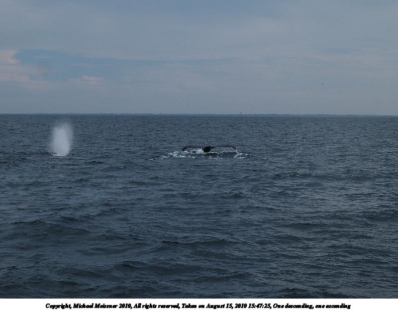 Picture #18: Whale tail Thumb: 399x200, 28,476 bytes (28K) Small: 798x423, 63,840 bytes (63K), (html file) Copyright, Michael Meissner 2010, All rights reserved Olympus E-3 camera with Olympus 50-200mm f/2.8-3.5 lens and Olympus EC-14 (1.4x) f/4.5, ISO 200, 1/1600 sec, 184.0mm, shutter priority, vivid color, matrix metering, IS1 (All Direction Shake IS) 35mm equivalent focal length 369.0mm, EC-14 Programs used: gimp Taken by Michael Meissner on August 15, 2010 15:37:16 Last modified on September 20, 2010 at 08:49 This picture is one of my favorites. |
