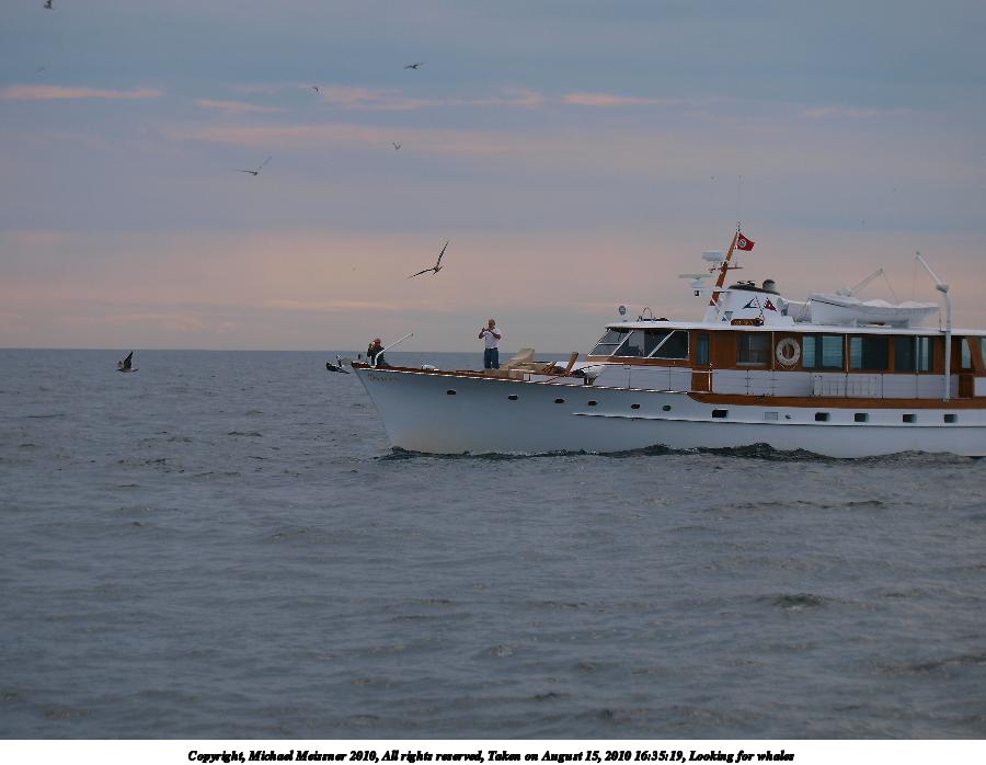 Picture #67: Whale watch boat Thumb: 480x360, 39,263 bytes (39K) Small: 800x623, 81,452 bytes (80K), (html file) Copyright, Michael Meissner 2010, All rights reserved Olympus E-1 camera with Olympus 14-54mm f/2.8-3.5 lens f/7.1, ISO 100, 1/250 sec, 19.0mm, auto mode, SHQ, matrix metering, +2 contrast, +2 sharpening 35mm equivalent focal length 38.0mm Programs used: gimp Taken by Michael Meissner on August 15, 2010 18:34:19 Last modified on September 27, 2010 at 00:19 |
