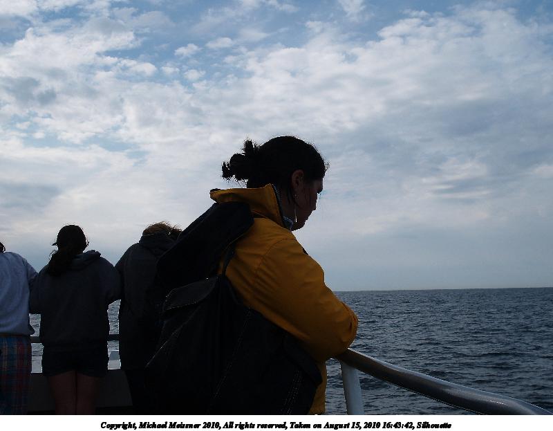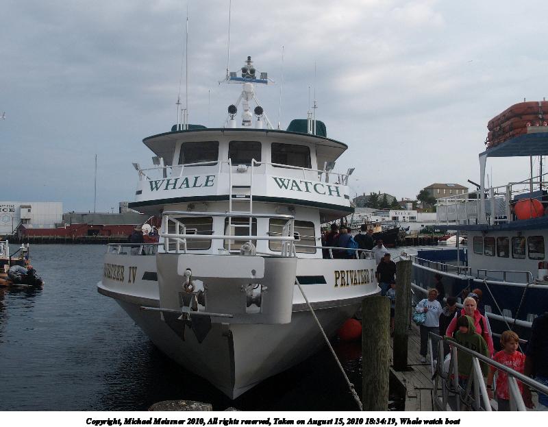 Picture #56: Whale watch ship Thumb: 480x360, 35,664 bytes (35K) Small: 800x623, 71,881 bytes (71K), (html file) Copyright, Michael Meissner 2010, All rights reserved Olympus E-1 camera with Olympus 14-54mm f/2.8-3.5 lens f/6.3, ISO 100, 1/500 sec, 14.0mm, shutter priority, SHQ, matrix metering, +2 contrast, +2 sharpening 35mm equivalent focal length 28.0mm Programs used: default crop, gimp Taken by Michael Meissner on August 15, 2010 16:37:19 Last modified on September 27, 2010 at 00:07 |
