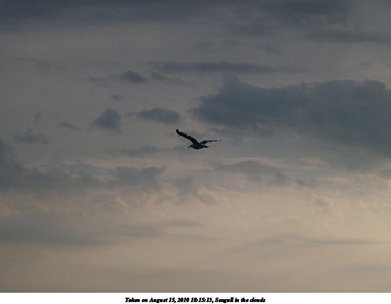 Picture #61: Seagull in the clouds Thumb: 480x360, 19,067 bytes (19K) Small: 800x623, 31,891 bytes (32K), (html file) Olympus E-1 camera with Olympus 14-54mm f/2.8-3.5 lens f/8.0, ISO 100, 1/500 sec, 52.0mm, auto mode, SHQ, matrix metering, +2 contrast, +2 sharpening 35mm equivalent focal length 104.0mm Programs used: default crop, gimp Taken by Michael Meissner on August 15, 2010 18:15:13 Last modified on September 27, 2010 at 00:24 This picture is one of my favorites. |