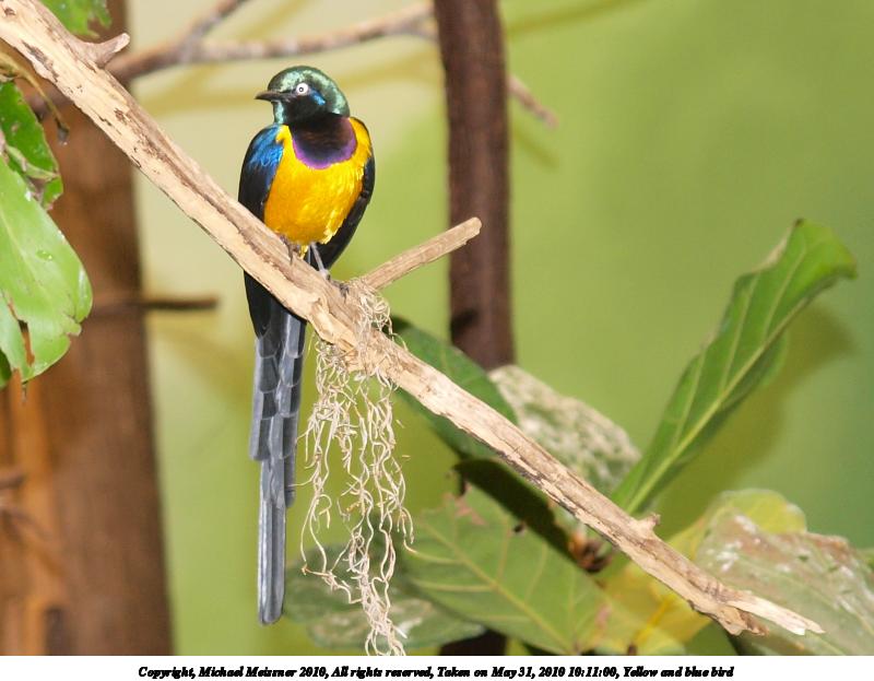 Picture #94: Yellow and blue bird 800x623, 70,563 bytes (69K), (html file) Copyright, Michael Meissner 2010, All rights reserved Olympus E-3 camera with Olympus 14-54mm f/2.8-3.5 lens f/3.4, ISO 500, flash, 1/80 sec, 45.0mm, auto mode, vivid color, auto gradation, matrix metering, IS1 (All Direction Shake IS) 35mm equivalent focal length 90.0mm Programs used: gimp Taken by Michael Meissner on May 31, 2010 10:11:00 Last modified on February 21, 2011 at 14:02 |
