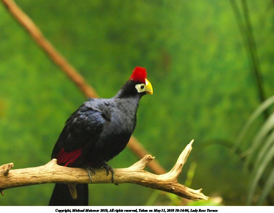 Picture #92: Lady Ross Turaco 900x698, 64,968 bytes (64K), (html file) Copyright, Michael Meissner 2010, All rights reserved Olympus E-3 camera with Olympus 50-200mm f/2.8-3.5 lens f/2.8, ISO 2000, 1/30 sec, 69.0mm, auto mode, vivid color, auto gradation, matrix metering, IS1 (All Direction Shake IS) 35mm equivalent focal length 138.0mm Programs used: default crop, gimp, neatimage Taken by Michael Meissner on May 31, 2010 10:14:06 Last modified on February 21, 2011 at 14:08 |