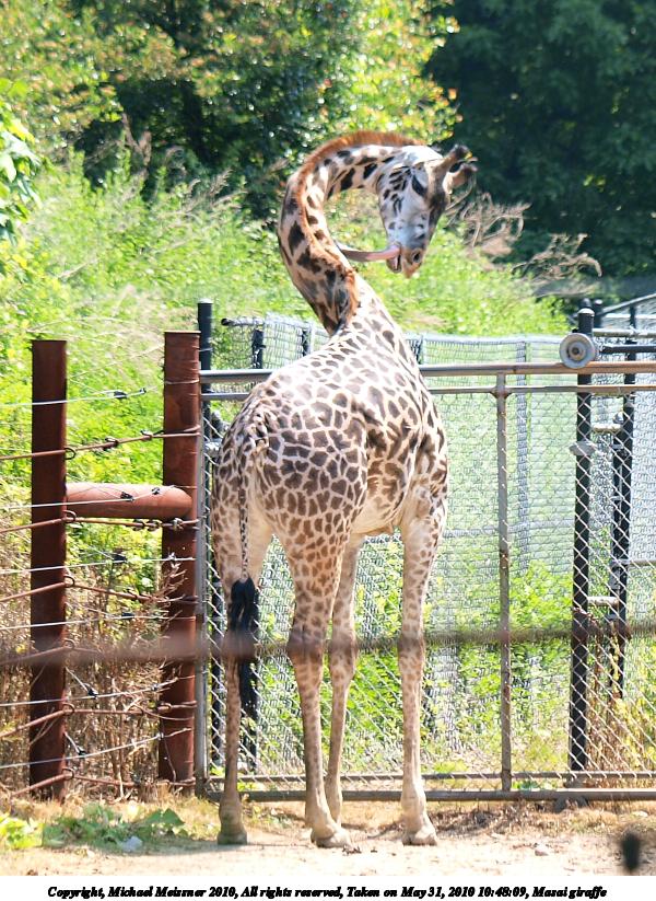 Picture #81: Masai giraffe 600x823, 158,631 bytes (155K), (html file) Copyright, Michael Meissner 2010, All rights reserved Olympus E-3 camera with Olympus 50-200mm f/2.8-3.5 lens f/3.5, ISO 100, 1/250 sec, 83.0mm, auto mode, vivid color, auto gradation, matrix metering, IS1 (All Direction Shake IS) 35mm equivalent focal length 166.0mm Programs used: gimp Taken by Michael Meissner on May 31, 2010 10:48:09 Last modified on February 21, 2011 at 14:31 |