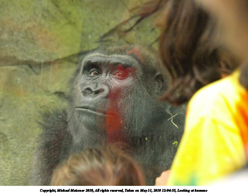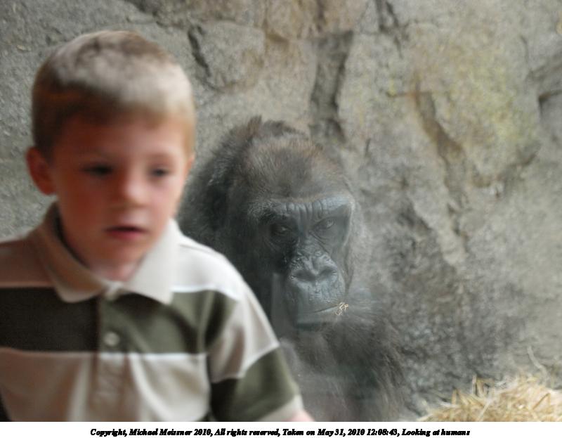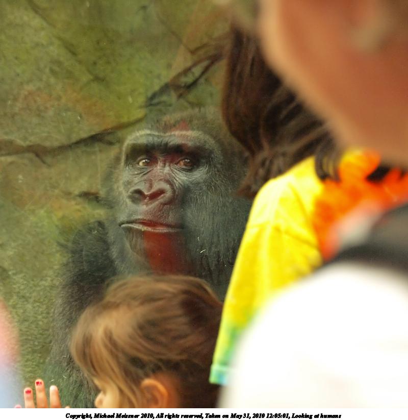 Picture #38: Looking at humans #2 800x823, 72,371 bytes (71K), (html file) Copyright, Michael Meissner 2010, All rights reserved Olympus E-3 camera with Olympus 50-200mm f/2.8-3.5 lens f/2.8, ISO 1250, 1/100 sec, 50.0mm, auto mode, vivid color, auto gradation, matrix metering, IS1 (All Direction Shake IS) 35mm equivalent focal length 100.0mm Programs used: gimp, neatimage Taken by Michael Meissner on May 31, 2010 12:05:01 Last modified on February 21, 2011 at 17:01 This picture is one of my favorites. |
