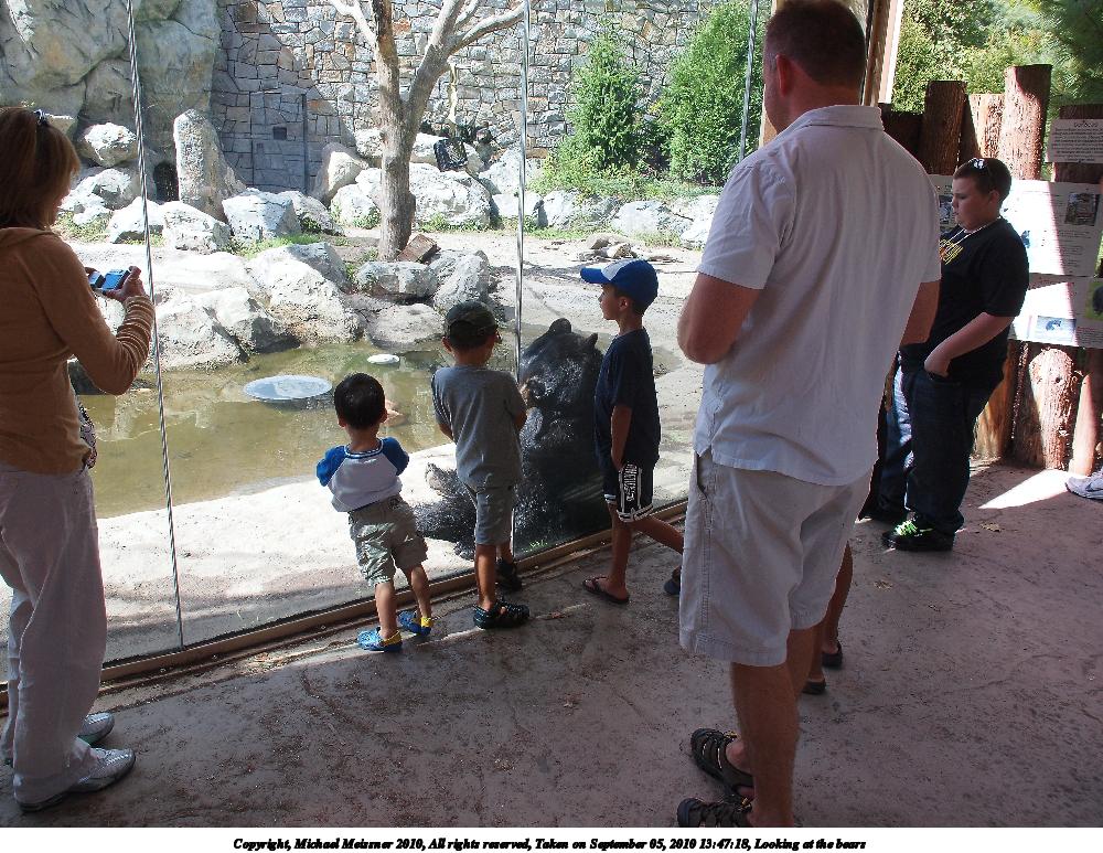 Picture #33: Looking at the bears #2 1000x773, 139,054 bytes (136K), (html file) Copyright, Michael Meissner 2010, All rights reserved Olympus E-P2 camera with Olympus-m43 14-150mm f/4.0-5.6 lens f/6.3, ISO 200, 1/125 sec, 42.0mm, auto mode, vivid color, SHQ, matrix metering, auto + manual focus, IS1 (All Direction Shake IS), noise reduction auto 35mm equivalent focal length 84.0mm Programs used: default crop, gimp Taken by Michael Meissner on September 05, 2010 13:47:46 Last modified on February 22, 2011 at 07:13 |