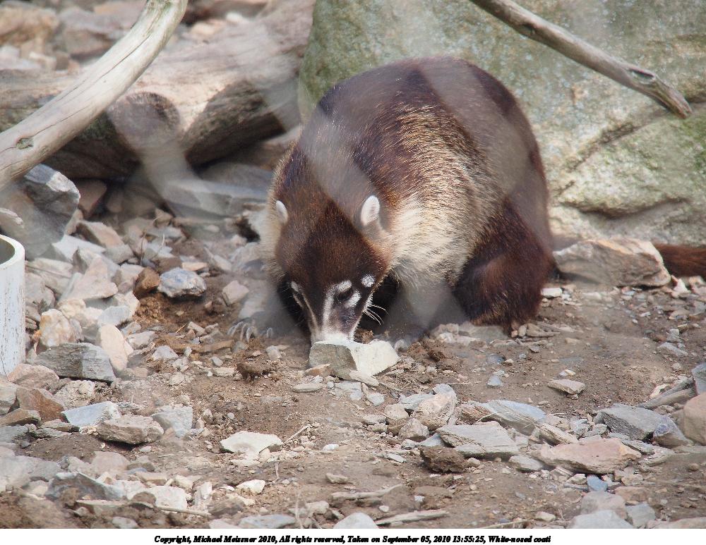 Picture #31: White-nosed coati 1000x773, 179,267 bytes (176K), (html file) Copyright, Michael Meissner 2010, All rights reserved Olympus E-P2 camera with Olympus-m43 14-150mm f/4.0-5.6 lens f/5.6, ISO 320, 1/200 sec, 150.0mm, auto mode, vivid color, SHQ, matrix metering, auto + manual focus, IS1 (All Direction Shake IS), noise reduction auto 35mm equivalent focal length 301.0mm Programs used: default crop, gimp Taken by Michael Meissner on September 05, 2010 13:55:25 Last modified on February 22, 2011 at 07:15 |
