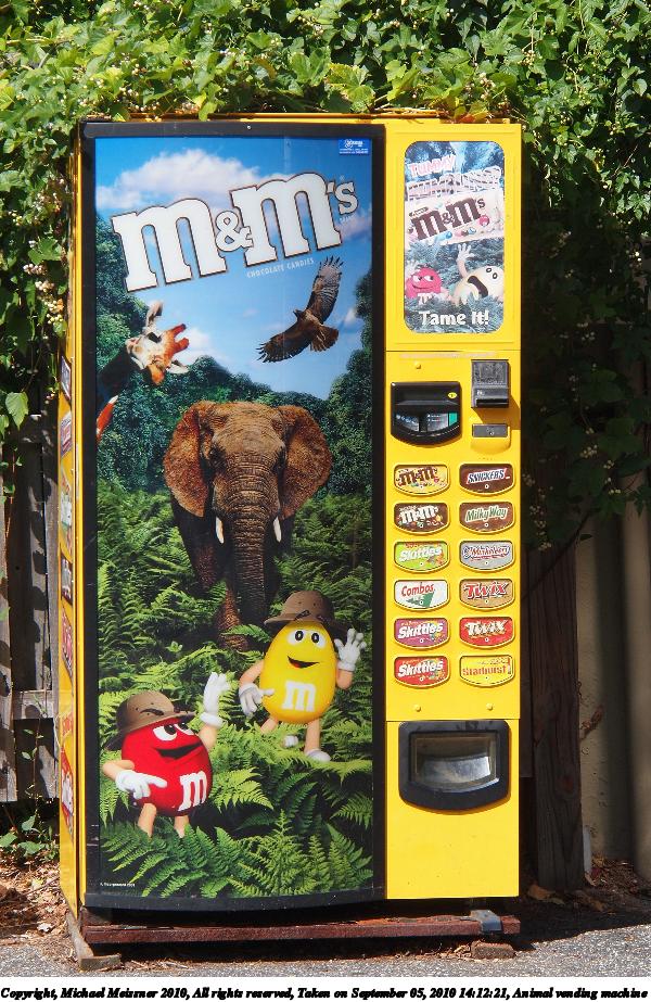 Picture #21: Animal vending machine 600x923, 174,756 bytes (171K), (html file) Copyright, Michael Meissner 2010, All rights reserved Olympus E-P2 camera with Olympus-m43 14-150mm f/4.0-5.6 lens f/8.0, ISO 200, 1/320 sec, 67.0mm, auto mode, vivid color, SHQ, matrix metering, auto + manual focus, IS1 (All Direction Shake IS), noise reduction auto 35mm equivalent focal length 134.0mm Programs used: gimp Taken by Michael Meissner on September 05, 2010 14:12:21 Last modified on February 22, 2011 at 07:37 |
