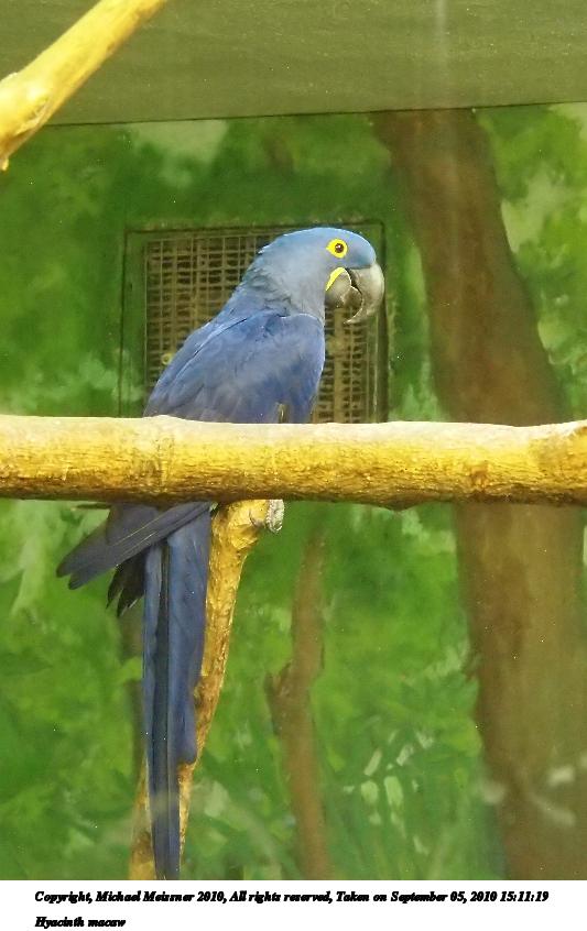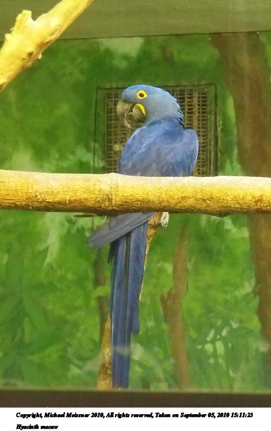 Picture #7: Hyacinth macaw #2 533x846, 67,875 bytes (67K), (html file) Copyright, Michael Meissner 2010, All rights reserved Olympus E-P2 camera with Olympus-m43 14-150mm f/4.0-5.6 lens f/5.4, ISO 3200, 1/40 sec, 63.0mm, auto mode, vivid color, SHQ, custom wb #1 (5400K), matrix metering, auto + manual focus, IS1 (All Direction Shake IS), noise reduction auto 35mm equivalent focal length 126.0mm Programs used: gimp, neatimage Taken by Michael Meissner on September 05, 2010 15:11:23 Last modified on February 22, 2011 at 08:01 |